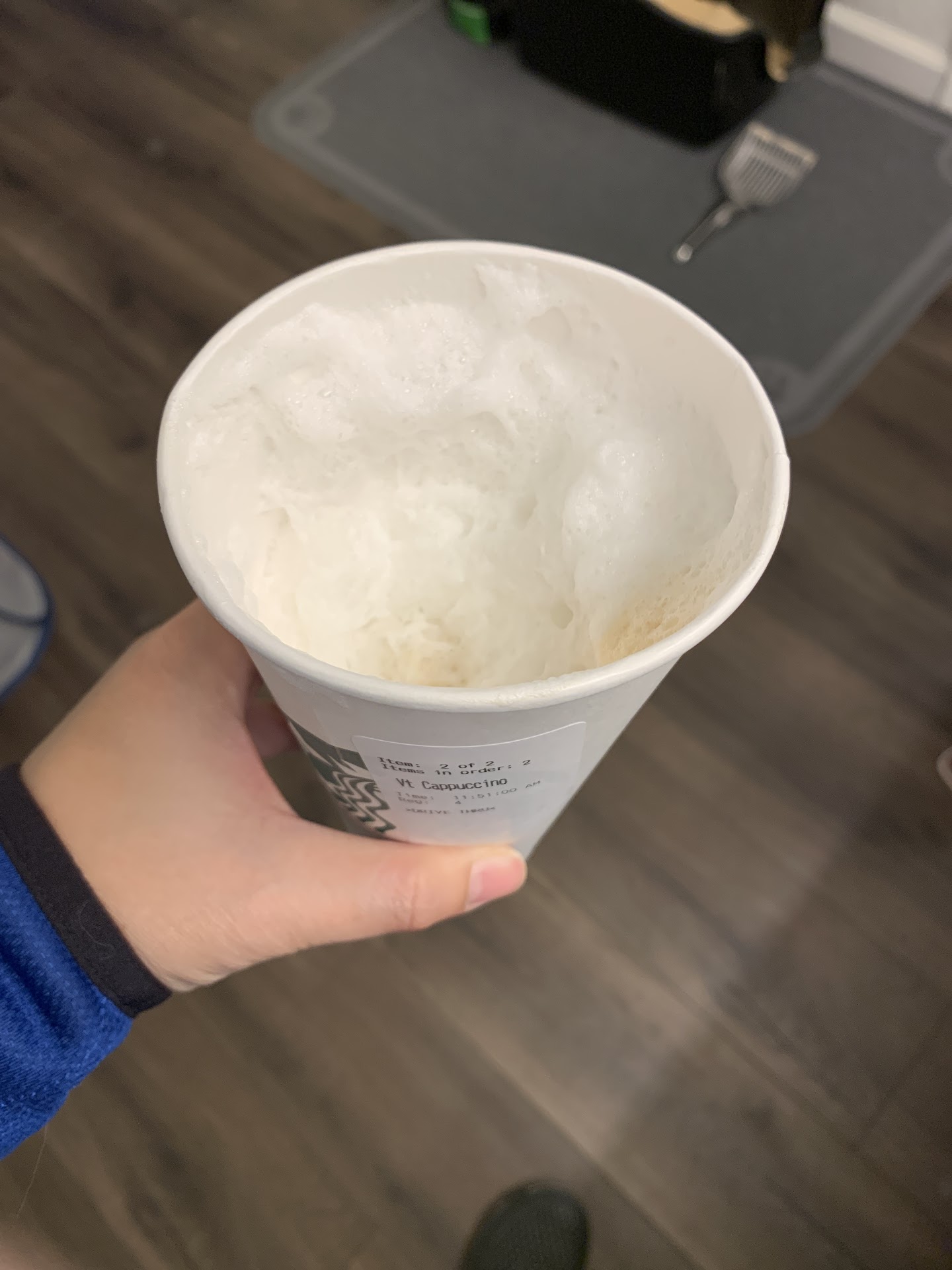 Read moreI ordered ahead a venti chai latte extra hot, and a cheese danish. I get there as I am rushing to get to work. When I arrive for my pick up.. my drink is sitting on the counter, out in the open (no stopper to keep my extra hot drink hot) and my cheese danish is on the opposite side of the drink. I gather my items and leave. Get to my car and noticed a large bite was already taken out of my danish! I was so upset. When I go back in to get a refund, I am met with the worker who is not apologetic at all. The store in my opinion is not clean, they don’t take any pride in the way the product is coming out and the customer service is horrible. He didn’t offer to make a new drink or anything complimentary nothing !!! I’ll never go back to this location. The store wasn’t even busy and there were two workers there so there was help. Seems like he cared more about his eyeshadow being perfect than the customer...