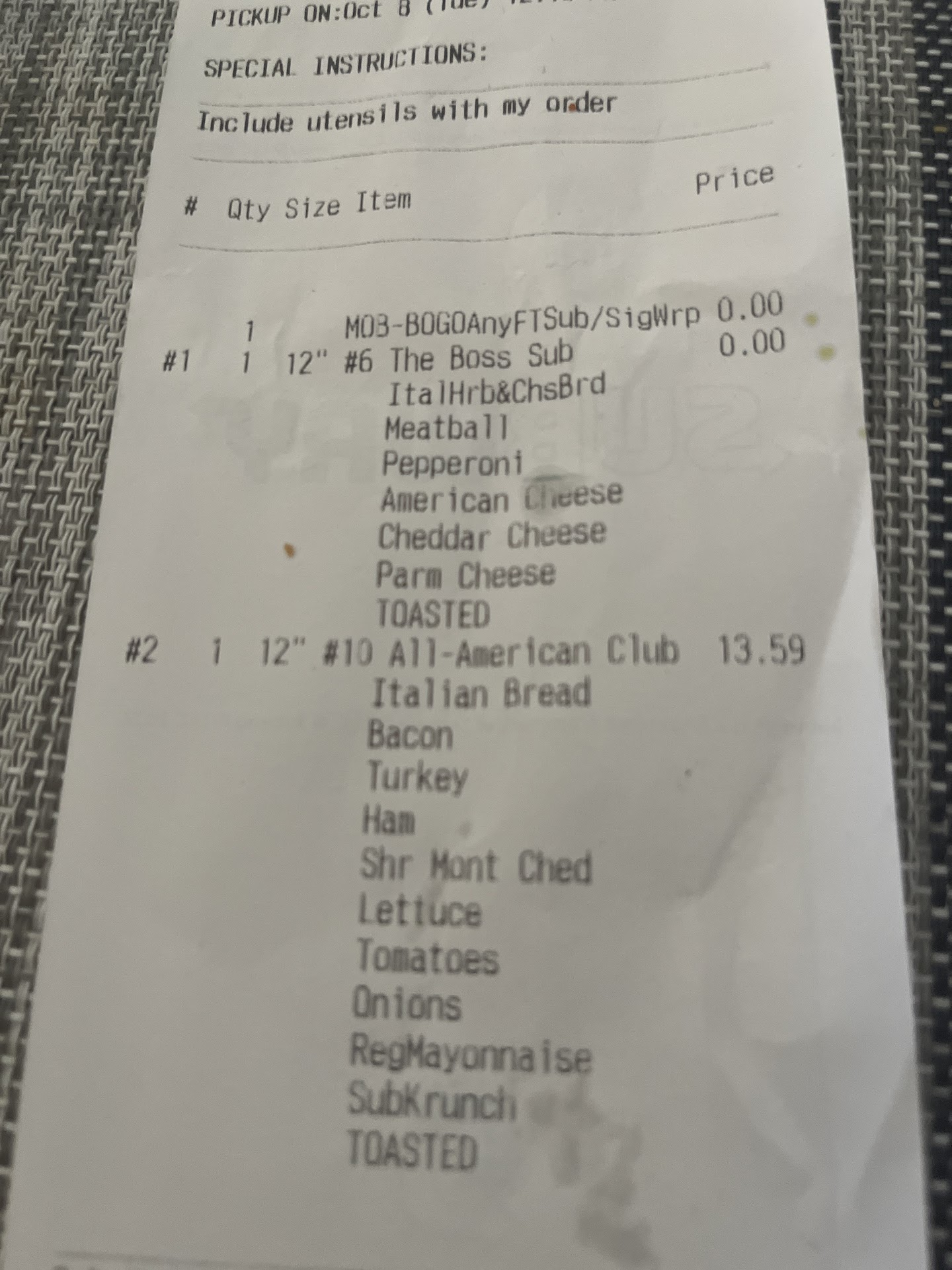 Read moreSubway #44239-0: Disappointing Experience I was excited to try Subway again, especially since I had ordered through the app and requested specific customizations for my sandwiches. Unfortunately, my experience at Subway #44239-0 was extremely disappointing. When I arrived to pick up my order, the staff refused to make the requested changes, claiming it would require an additional charge. This was despite the fact that I had already paid for the order in full through the app and the customizations were listed on my receipt. It's frustrating to have my order not prepared as requested, especially when I've already paid for it. I won't be returning to this location...