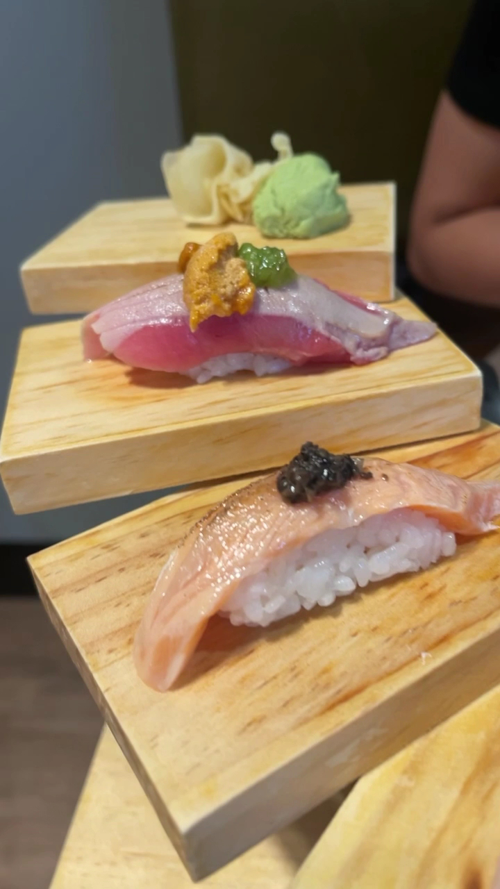 Few things that i believe would turn this experience into the lovely 5 stars. They are currently working on their liquor license. Not a big deal to the mass, the kitchen vent fan is quite loud and that's where the loud music comes in to mask the noise. The fan is reduced/replaced, the music volume lowers, and now you have a perfect date night or group catching up with each other. We were excited to see hamachi kama on the menu but on a Friday night at 5:30 it was not available. Our server brought out our Omakase but did not go over what each nigiri was. We ended up asking our server who went in the back to come back out to explain it to us. Only to explain that the omakase changes based on what they had for the day. Some days would have wagyu and some ama ebi. But we were not told what we were having today. I believe this action alone, will increase their brand image much more.