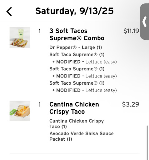 These days, I generally get the rice&beans burritos and if the timing is right a regular crunchy Taco. I get gout so am on a mostly vegetarian diet but Tacos are...