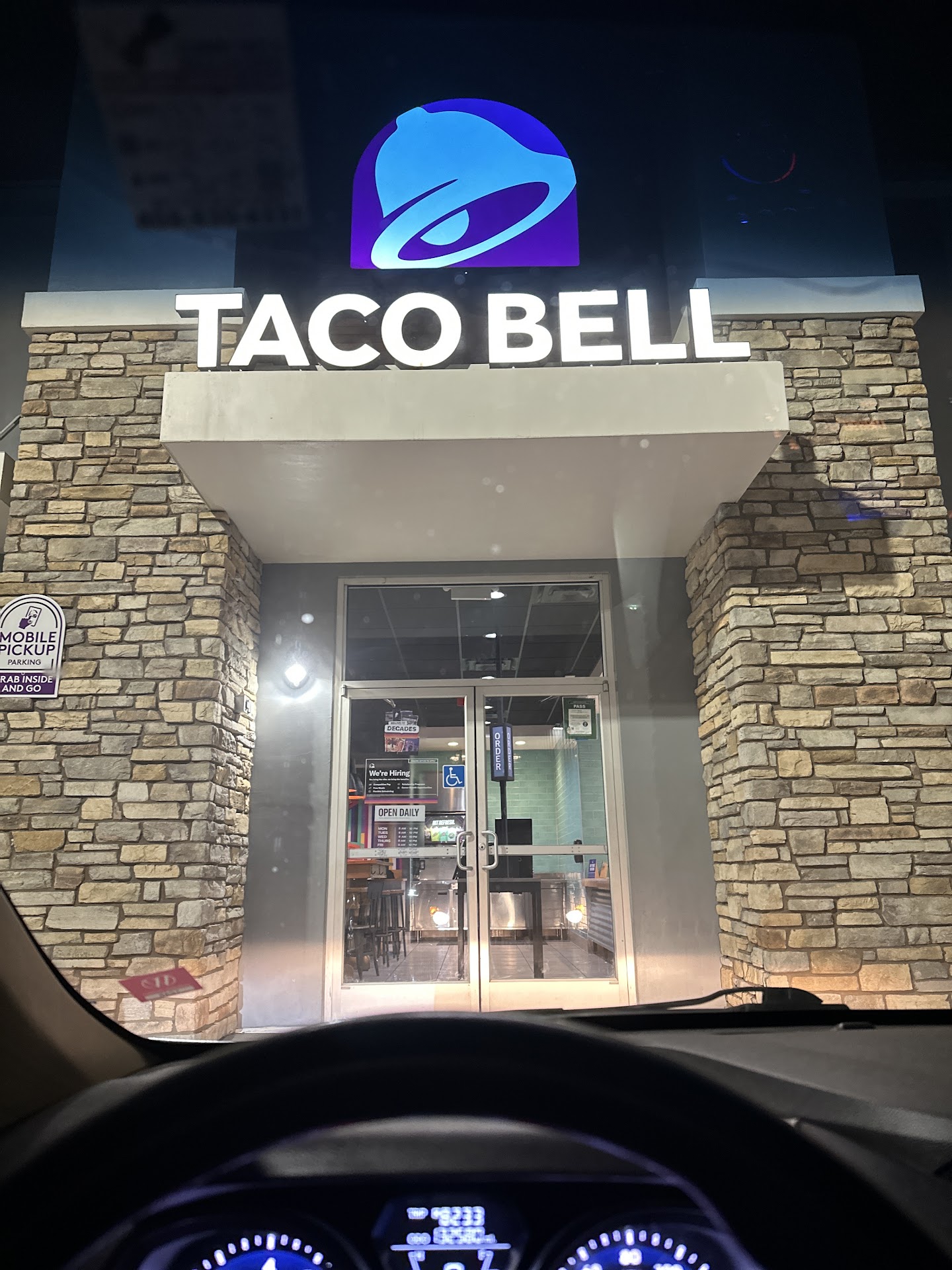 Read moreIt's Taco Bell. What more needs to be said? There are remarkably consistent from store to store. They are my go-to for food when I can't decide. I have been a patron since 1971, when the middle school I attended let us leave for lunch. (In those days, I could get a taco, pintos&cheese, a tortilla, and a small soda pop for $1.04.)