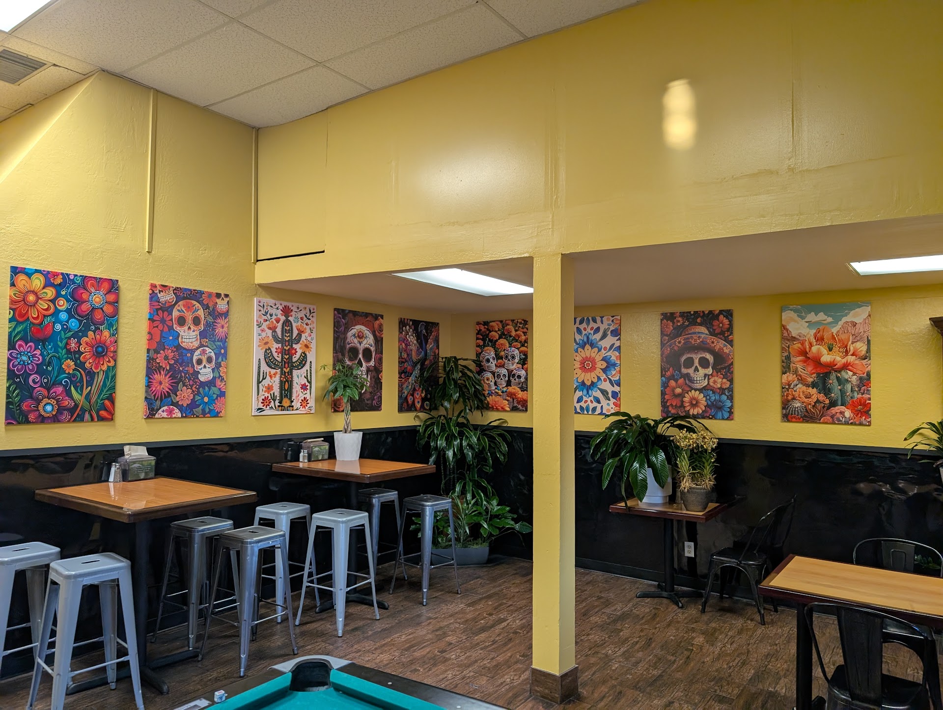 We ordered from a service that offers overage items at discount. We received Items that were not on the menu with Asian rice, Asian noodles, chicken in sauce and beef. The food was fine but definitely not Mexican The venue is new construction and the only eatery in commercial center of small businesses. Full bar and pool table with accessible tables. Menu is posted with white background and small letters. Accessible gender free restrooms with 2 grab bars and 5ftx 6ft space Accessible tables with a few high top seatings. Full bar with beer in tap Free van accessible parking in shared lot with no curbs. Venue is open until 730 or 8pm and closed...