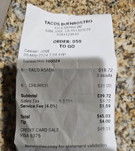 These guys were having Cinco De Mayo special -- Buy 2 Tacos Get 1 Free. I ordered 6 and got 3 Free. They used different meats for the Free ones. The meats looks different and smelt really bad and it looks like they were using expired meat. They didn't bother putting onions and cilantro on the free ones either. The paid tacos that I ordered were super dry and had some odor, too. I had food poisoning right after eating their food. I had diarrhea and threw up twice with bad stomach ache. Also these guys rip you off on the churros. One order is consist of 3 churros and they go for $10.50. They changed me for 2 orders and only put 1 order. I only found out when I got home. They will try to confuse you on the pricing and act like they have language barrier. You cannot order just one individual churro. Their price is really inflated and expensive. I swear you could be dining in at a nice restaurant with the prices they're charging. On top of that, they charging service fees. What the hell? This is a food truck and fast food quality foods at most. Their menu doesn't show pricing so you will only find out right after you paid when you get the receipt. Shady practice of business. Also, check your statement because they overcharged me. I will not be coming back because of the shady way they practice their business, low quality foods and super expensive pricing -- on top of that, I got sick from eating their food. The city of San Jose needs to send a food inspector to check their kitchen and foods. They are only here to rip-off high school kids. The food truck right across the street and the taqueria are better alternative than these guys.