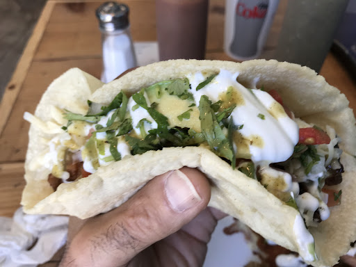Read moreI had this place book marked for a while now being it had such high praise and reviews. The pictures posted also look so good. As I walked in I noted the place was hopping busy with every seat taken. I walked up to the counter and saw that they had a 2 sided menu âwith no picturesâ hmmm what do I order? Heck I donât even know what some of these food items are. I asked the cashier what he recommended and he took out his phone and showed me pictures of what people order a lot. âGood selling tool, just wish the pictures were on the menuâ I ended up ordering a super taco $3.99 soft tortilla, L Pastore meat, sour cream, avocado, diced tomatoes and a wedge of lime. A Jefecita with carnitas meat. $4.99 this one comes with a larger soft tortilla with browned burnt cheese on both sides of the Tortilla. âSee picsâ Last but not least a horchata to drink â one of the better ones Iâve had âand Iâve had a lot, trust me. I sat at my table âthe only one available lolâ and a nice lady with a smile on her face brought my order with 2 different bottles of homemade sauce âred and greenâ both slightly hot, the red one had kind of a smoky flavor. I opted for the green âand lots of it, so goodâ Now for the flavors: the super Taco with the L Pastore has got to be the best Iâve had so far âanywhereâ but the Jefecita..,,,,OH MY GOSH I felt like...... well Sally âfrom the movie when Harry met Sallyâ except I was screaming Jes! Jes! âIn my head, silent voice lolâ And my eyes rolled so far up in the back of my head I could see behind me!! People this place is Da real deal!! One side note, I watched as people got up from the tables how the worked immediately busted and clean the...