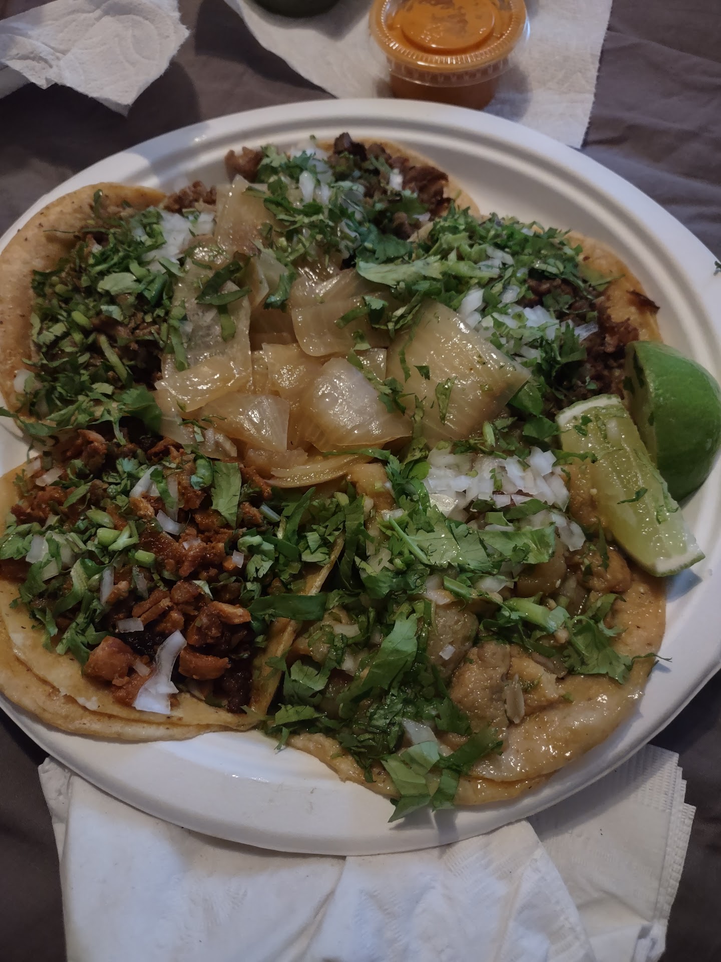 Read moreThey have their menu up with tomato lettuce but don't have that I asked for cheese and no cheese the carne asada had no flavor Chile to hot, I don't care for it no pico de gallio. Which it be nice if taco trucks and taco stands wouldn't make every Thing so dam hot, and at least have cheese. Oh the grilled onions were good that it. Have to put star my choice no star I found them...