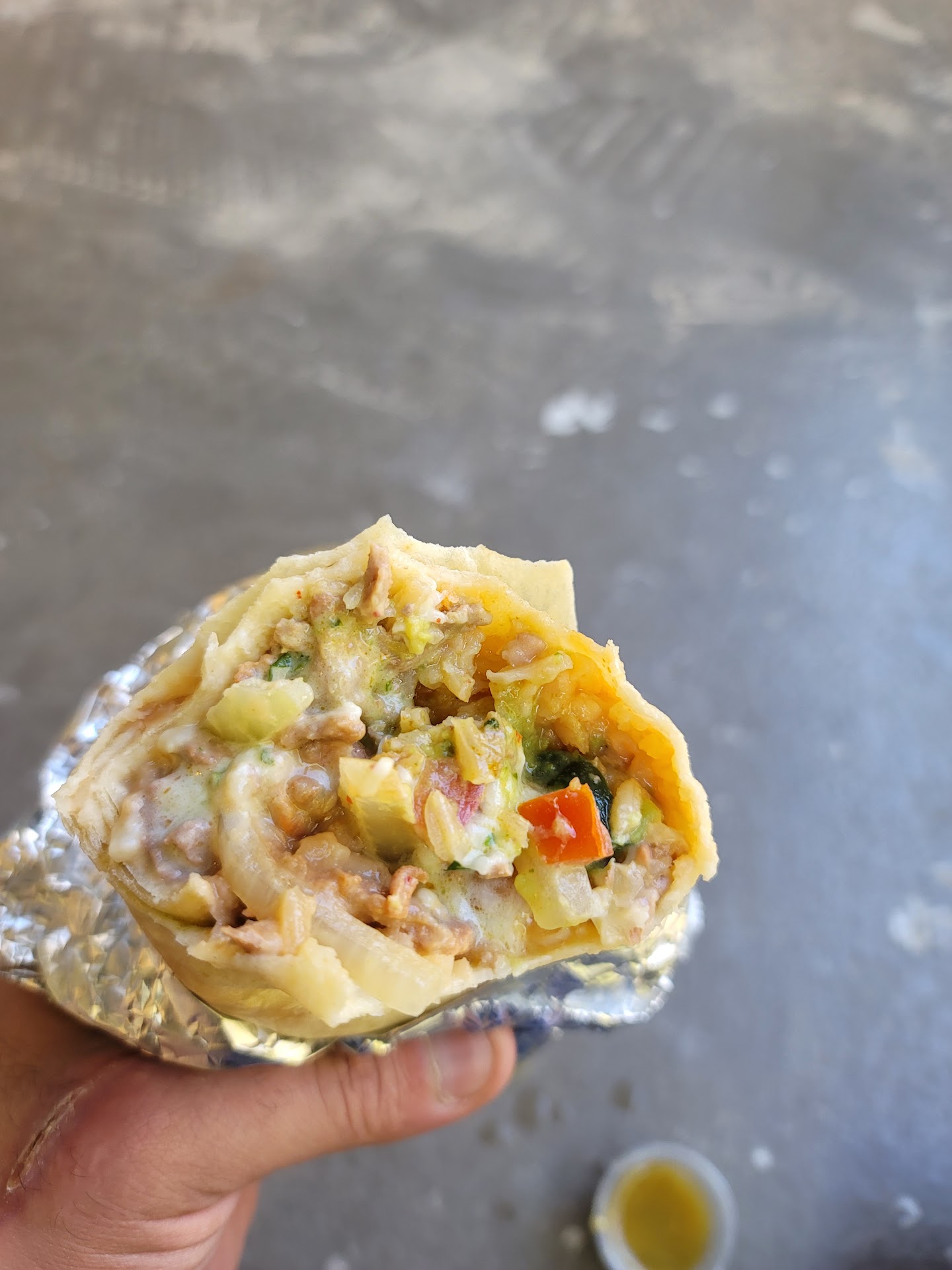 Read more8.8/10 carne asada super burrito. The burrito is filled with fresh onion, cilantro, bell peppers, sour cream, guac, and rice, and beans. A lot of places charge extra to add everything in, and for the price $12, it is definitely worth it for the taste. The burrito is a little small compared to other places (but not terribly small). The tortilla is soft and really adds a nice touch.