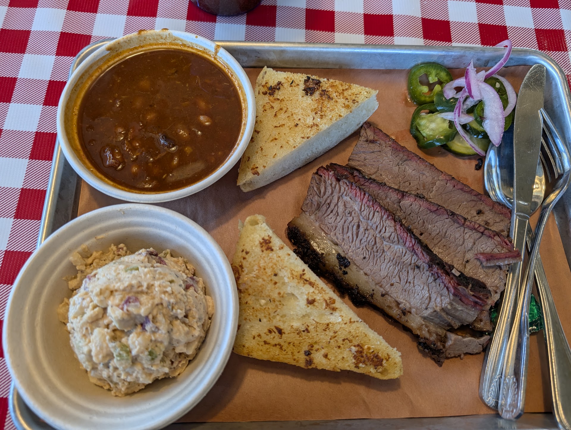 After 4 different visits I have come to the conclusion that this place is not worth it. The inconsistent food quality is a big issue. The main issue for me during my visits is that they can't seem to nail the temperature of the meat upon serving it. They need to install heat lamps or something to keep the meats at a decent temperature when plating them. By the time the kitchen plates the food and a server places the food on your table the meat has gone cold. I don't know why this keeps occurring. I have mentioned this to the staff, but they don't seem to care about doing something about it. The other issues relate to their side dishes. On one visit I ordered the Macaroni and Cheese and in that instance the pasta was sooooo overdone that it was falling apart into a puree. Their corn bread recipe is horrible, no flavor to it, they need to choose another recipe for it. Their beans side dish tastes straight out of a can. The ambiance is great, merchandise is interesting, as well as their beverage selection. But when it comes to the meats and side dishes they have a lot to work out. I am giving this place one more try (because I bought one of their deal cards) and if they don't meet my minimum expectations, I will never go back. I have a few neighbors that have mentioned the same issues, so I am not alone here with my review. One last thing, as you can see from my two photos posted, I paid a lot of money for the lunch combo to only receive the equivalent of 2 slices of meat. I say 2 because even though 3 slices are shown in the first photo all the fat they contained made up for one slice (as shown in the second photo). This is outrageous. I think the kitchen staff should be given the discretion to add more meat if there is too much fat in the slices. As soon as the money is used up in my gift card, this place will be off my list and will join the magnificent void...