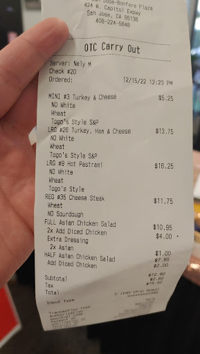 I recently visited Togo's and was extremely disappointed with my experience. The sandwich was dry and lacked flavor, and the bread was stale. The lettuce and tomatoes were wilted and unappetizing. The service was slow and the staff seemed uninterested in providing good customer service. The store was dirty and unkempt. I would not recommend Togo's to anyone and will not be returning. It was a waste of time and money. Overall, Togo's is a poor excuse for a sandwich shop. Furthermore, the prices at Togo's are exorbitant for the lack of quality and quantity of food you receive. I ordered a "large" sandwich and was shocked at how small it was. I left feeling hungry and unsatisfied. The only redeeming quality of my experience was that the sandwich was wrapped in foil which kept it warm. The atmosphere of the store was also uninviting. The lighting was dim, the floors were sticky and it had a strange smell. The seating area was cramped and uncomfortable. I observed several tables with dirty dishes and trash left behind by previous customers, which made me question the cleanliness of the kitchen. I would advise anyone looking for a sandwich to steer clear of Togo's and instead opt for a different sandwich shop where you will receive better quality food and service. I am extremely disappointed with my experience at Togo's and will not be returning. Additionally, the employees at Togo's were not only uninterested in providing good customer service, but they were also rude and unprofessional. I overheard them complaining about their jobs and customers, which made me uncomfortable. I also observed them not washing their hands or wearing gloves while handling food, which is a huge sanitation concern. I also noticed that the menu was very limited and uninspired. They offered a few basic sandwich options and nothing more. I would have appreciated more variety and some innovative sandwich options, but unfortunately, Togo's did not have anything of the sort. In conclusion, Togo's is a poor excuse for a sandwich shop. The food, service, atmosphere, and employee attitude are all lacking. I would not recommend Togo's to anyone and will not be returning. It was a waste of time and money. I would advise anyone looking for a sandwich to steer clear of Togo's and instead opt for a different sandwich shop where you will receive better quality food, service,...