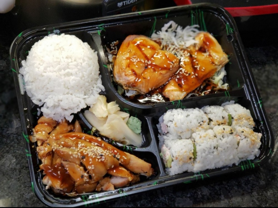 This was our line-up: Bento Box (Salmon Teri/Chicken Teri/Cali Maki), Salmon Teri with brown rice, Chicken Teri, and an order of their Shrimp Tempura Roll. The salmon and chicken were cooked perfectly, and they were both moist and flavorful in each of the individual orders. The Shrimp Tempura Roll and the Cali Maki were probably the best I've had in a while.