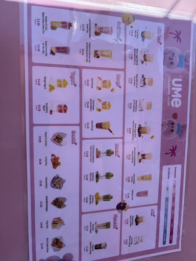 Not like in other UMEs/cafes. So, i always buy boba tea at UME, and always brown sugar with mochi and leeche jelly. I tried this one place, which i have never been to before, and they didn’t put any toppings. They gave me a medium drink, when i asked for a large one, as well as they gave me extra ice when i asked for NO ICE! So they gave me everything not right. Well thank you for the right drink i guess… Umm, about the drink, it didn’t even taste right. It tasted as if they added coffee into my drink, even thought it says no caffeine in the ingredients. Im highly disappointed, because today was a very bad day and I wanted to cheer myself up, by buying my...