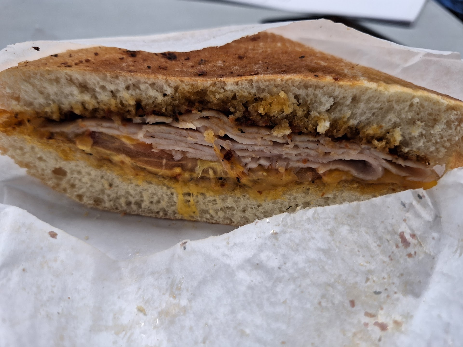 The sandwich was priced reasonably at $8.99, a pleasant surprise in a region often notorious for its steep prices. The Turkey Chipotle Hot Sandwich was a delightful combination of freshly carved turkey, nestled between slices of perfectly toasted bread. The chipotle sauce added just the right amount of heat to keep my taste buds intrigued, without overwhelming the palate. It was a delightful treat that exemplified the harmonious balance of flavors that one always hopes to encounter in a well-prepared sandwich.