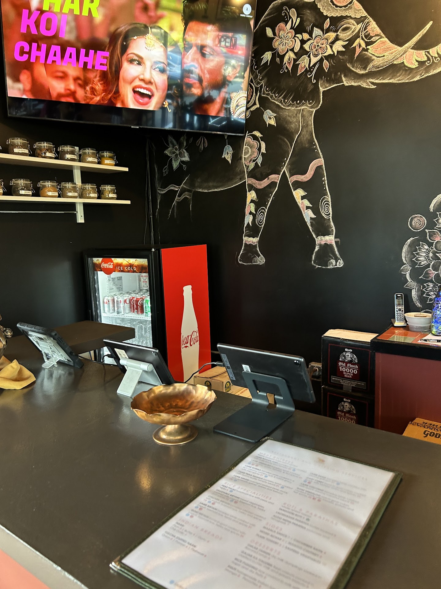 Everything is well kept and the tables are very nicely decorated and have nice music and tvs with Bollywood dancing playing just at the right sound level. The chairs also have cute little cushions that aid to back support when sitting down.
