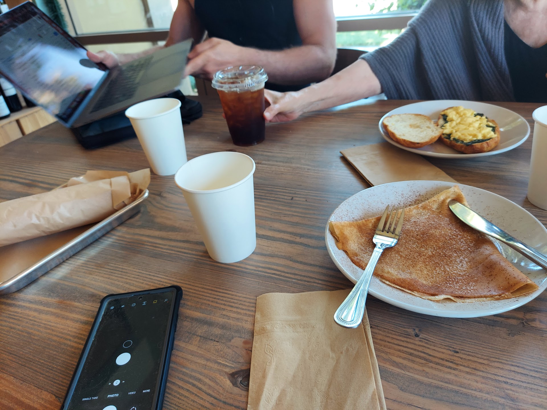 But,the staff were very friendly, great atmosphere & THE BEST CROISSANTS/ BAGUETTS I've ever had in the last 10.years ,or 20 years maybe !!! đđ„đ„đ«đ”âïžThey were so~yummy !!! The croissant was so soft !! Mom had croissant with scramble eggs/ spinach inside ,my sis had a vegan baguette sandwich w/ avocado đ„( the very last one !! ) ,her husband wanted more protein than carbs ,so I shared that with my sis besides my cinnamon butter crepe ! Which was so- good ,very classy ,sophisticated taste !!! I felt like I was in Paris !! They were super sweet to let us have a table inside with my sister's dog !!! Thank you very much !! I still highly recommend this cafe to everyone as their services & food's quality & being a very dog friendly cafe !!! They do have a vegan baguette sandwich ( if avocados run out ,then it becomes super plain ,but if you love breads / pastries ,still yummy !! ) ! We really hope that they'll have a few more options for vegans ,too !! Like vegan sausages or patties & vegan bean dish ,either soup or salad ,that'll be awesome. Of course their vegan chocolate croissants come back will be great ,too !! We all loved the atmosphere/ services !! My sister & her husband loved their coffee ,though !! They told me it was a very good coffee !! Mom enjoyed her croissant sandwich very, very...