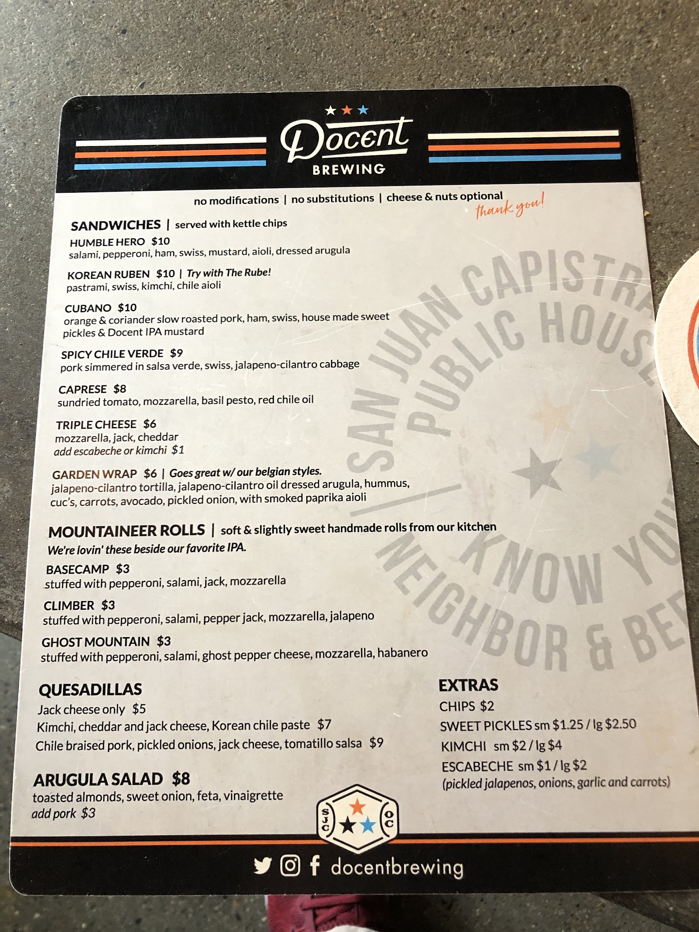 Okay fine…I’ll go down there, do a taste testing and buy the beers I like. I arrive on a Sunday evening near sunset and there’s no parking. Oh…there’s parking spaces with signs that read NO DOCENT PARKING alerting you to expect a towing if you park there. I left cuz this was aggravation I didn’t need. Decided midday on Monday would be a better time to try again. I returned today, parked and entered (passing a sign that referenced beer tastings) with plans to purchase six of their large cans and six of their smaller cans of whatever beers I liked. Nope. Docent won’t let you test taste an ounce of their 16 beers…you must order 4oz samplers. I said fine, Sell me one sampler of every beer, I’ll try em at home (cuz I don’t drink & drive) and then the young man explained they don’t come in 4oz containers, ya gotta drink em there. Now I have been drinking beer for 40 years and never have I ever been denied a taste of a new beer by any bartender. Docent has what? 16 different beers? If I wanna “test taste” them I must commit to buy 64 ounces of beer? Why not charge a 16 oz price and poor single ounce taste testers for new customers. Most breweries would comp these as a marketing deduction but not Docent…they just say no. At this point the effort to purchase their product had become an exercise in futility so for the second time I left empty handed.