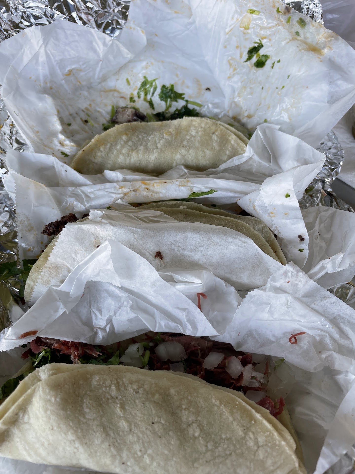 The two tacos I got today: (1) El pastor - the spicy marinated meat lit a fire in my stomach in the good way (2) Carne asada - the meat was generously provided I was asked whether I wanted cilantro and onions with my tacos and I said a resounding yes! I was incredibly full with just two tacos. It’s a filling meal.