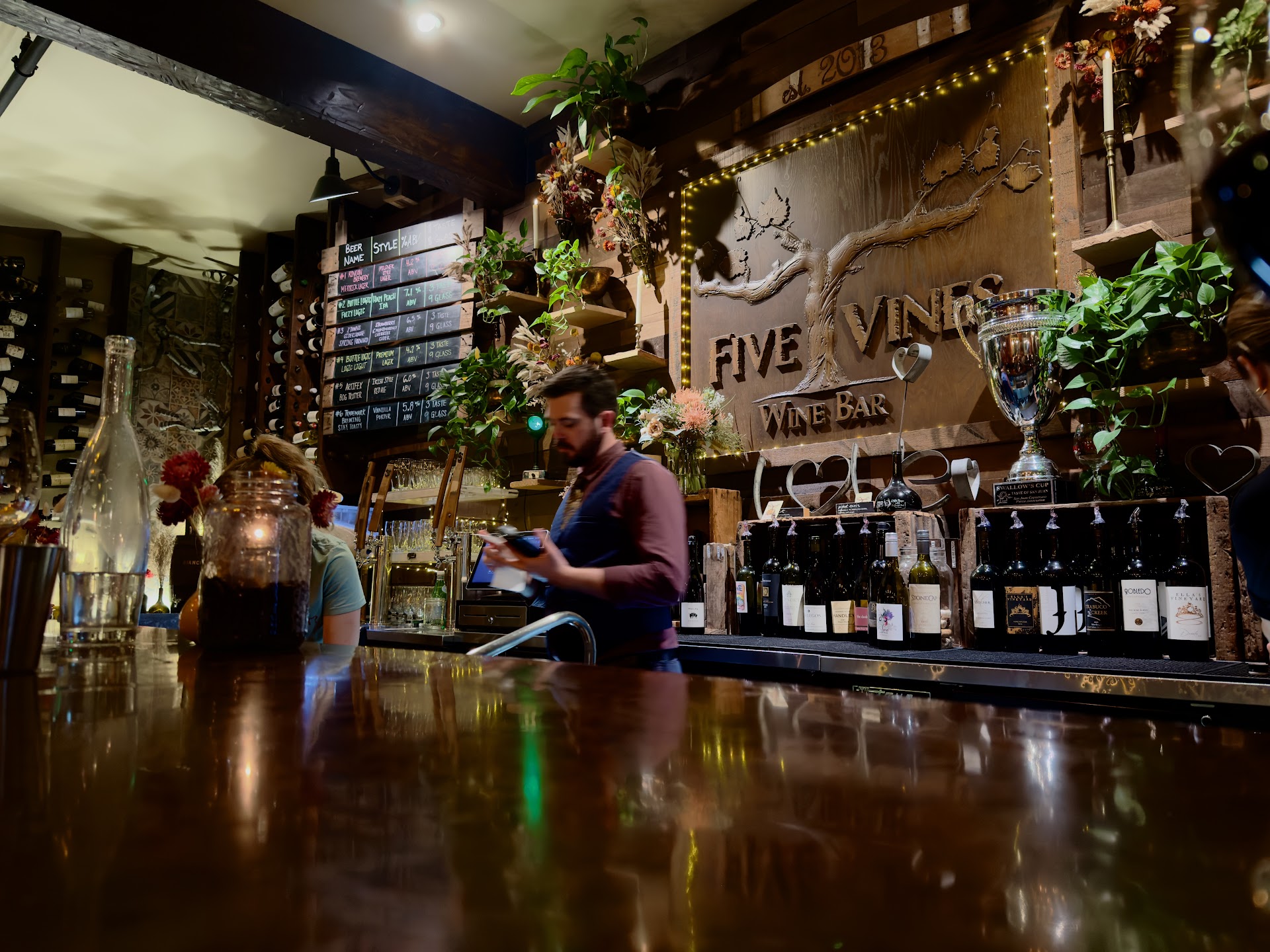 Read moreWe planned our rehearsal dinner at Five Vines all the way from Phoenix as we were having a destination wedding. We took a keep of faith and chose to have our rehearsal dinner without having the opportunity to visit first. And it was one of the best decisions we made for our entire wedding weekend. Five Fives in a family owned and operated wine bar in downtown SJC and it was evident from the beginning how much love and care they have put into making their establishment welcoming, beautiful, fun, and delicious. Through the planning process we worked directly with Suzy, one of the owners. She was fast to communicate and helped us plan the exact style dinner we were looking for. We held the dinner in the private area upstairs which also has a private balcony which guests really enjoyed. Having not been there before we brought some of our own decorations, which frankly we did not need. The room was beautifully set up with plenty of decor. We will be traveling back to SJC just to eat/drink there again. Everything was delicious. But what really made the night special was that they allowed us to play some of our families favorite songs on high quality speakers and dance together. It was such a wholesome and happy memory we will truly cherish forever. The bartender was Suzy’s son and he made the yummiest cocktails, made everyone laugh, and gave us phenomenal recommendations for must try local spots. Suzy and her family are kind and welcoming people and Five Vines completely exceeded our reherseal dinner...