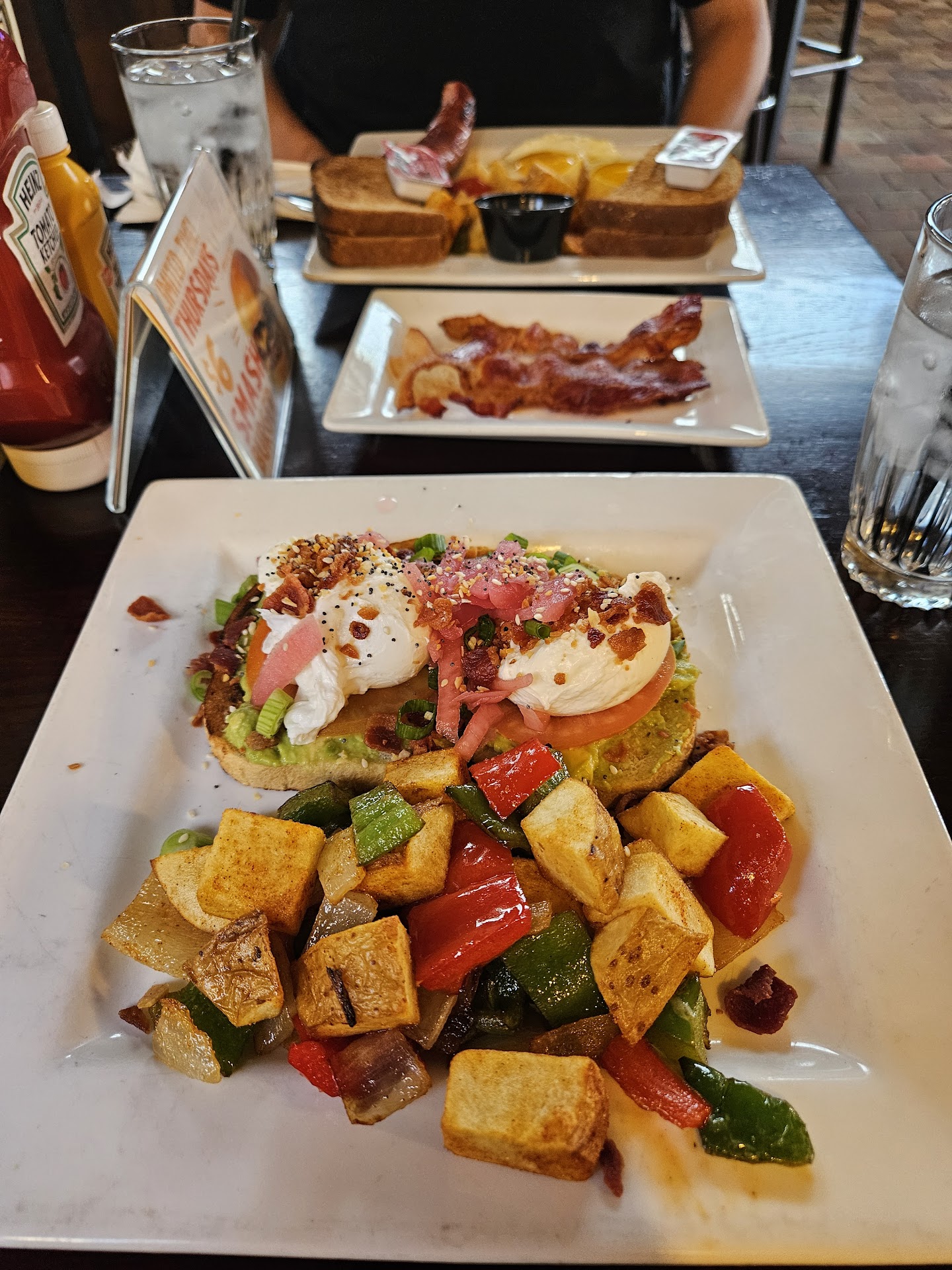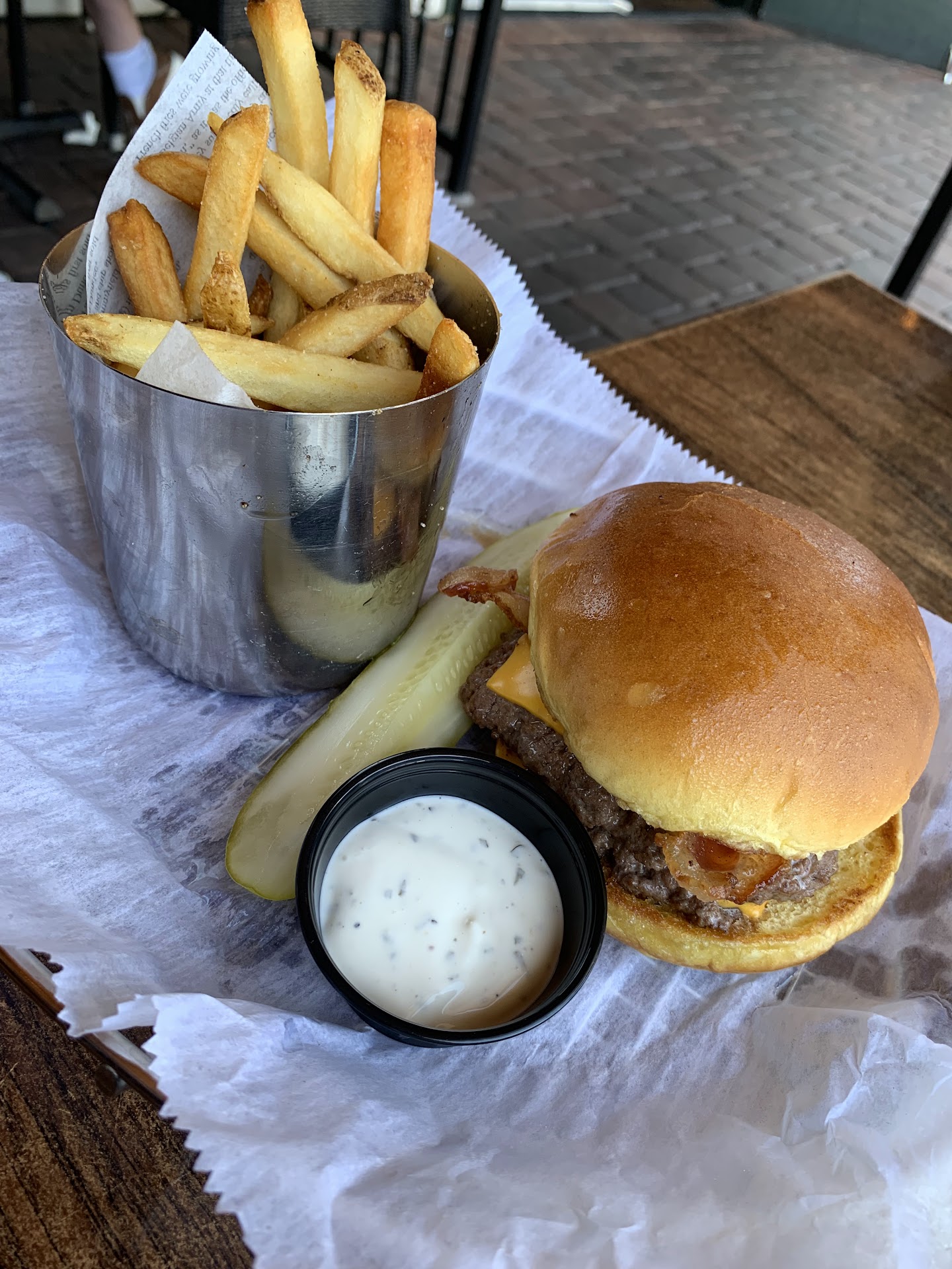 Read moreI would had given this place 5stars but there was certain things I believe that needs to improve. I came here about a week ago on my birthday with my bf and kids. We were told we could sit anywhere weâd like so we sat where we could have some shade but table was not cleaned up plates and cups were still there, we figured someone would come to clear it and start taking our order or at least our drinks(20 mins later) my bf had to go ask the bartender at the bar if we had to put the order with him. There was this young lady(waitress) walking around but would not bother to help us and seemed to just avoid us. Anyways, the bartender was able to have someone come to our table and clean it, as well as to take our order. Tyler was our server that day, very friendly and answered some questions in food choices since it was our first time there. Let just say our food choices were flavorful, although our steak was a little undercooked it still had flavor and my drink too. I had an Irish coffee and finished with rose wine. The kids enjoyed their food as well. My bf had their Hennesseyâs burger. Tyler was attentive throughout our lunch/dinner. We definitely enjoyed our dessert which was a chocolate fudge brownie topped with ice cream and whipped cream. Thank you Tyler for your service YOU get 5stars and when we go back will definitely...
