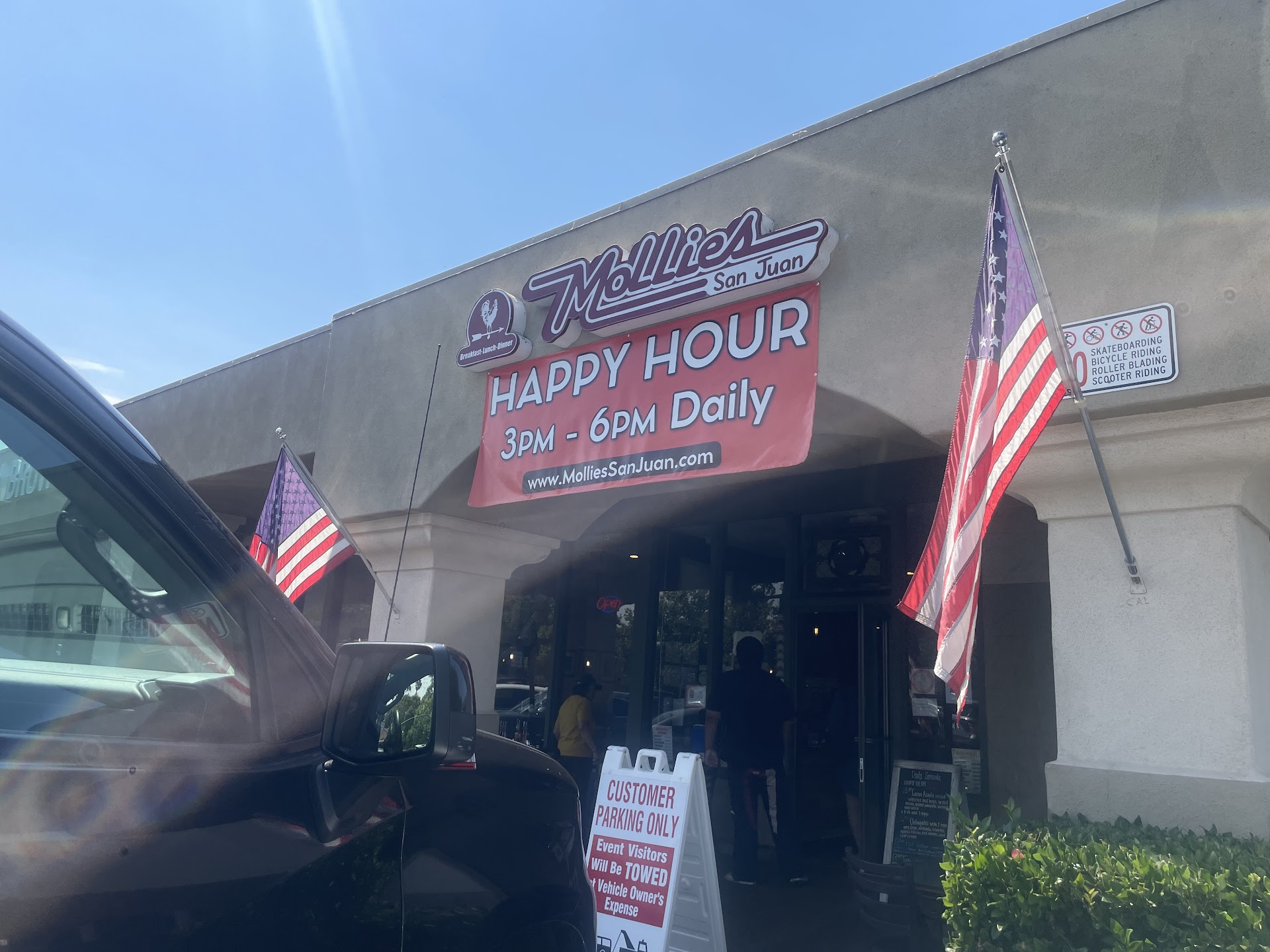 Read moreI have to give Molly's two stars. I've read previous reviews and a lot of them are very good so I took my group of 20 people in there on Saturday and another 20 on sunday. Service was very slow. I would expect that if we just dropped in on them but we actually let them know we were coming in advance so they should have been prepared. On the second day which was Sunday again they knew we were coming and they were supposed to have the patio all set up for us but when we arrived about 5 minutes early nothing was set up. It took them about another 15 minutes to get the tables lined up and get the area ready. Their service for the most part was second grade. One of their servers was really nice and polite. The other two were very patronizing and somewhat rude. I realize it's hard when you have a lot of customers to serve all at once but you have to remember those customers are what pays your salary so you can't be grumpy and snappy with them. We had several of our people make comments and their comments were met with sarcasm and rude remarks in return. I'll be taking groups to San Juan Capistrano from San Diego every weekend for a while but we probably won't go back to Molly's. First impressions...