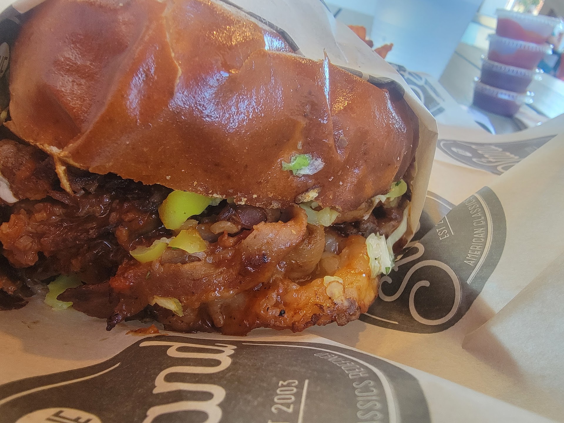Every bite matched that anthem. The BBQ Brisket on a Pretzel Roll was tender and smokey, a rockstar in sandwich formâevery bit as memorable as the iconic opening riffs of "Back In Black." And those Stand Fries, crispy and perfectly golden, accompanied by dips of lemon aioli and ranch, kept the hits coming.