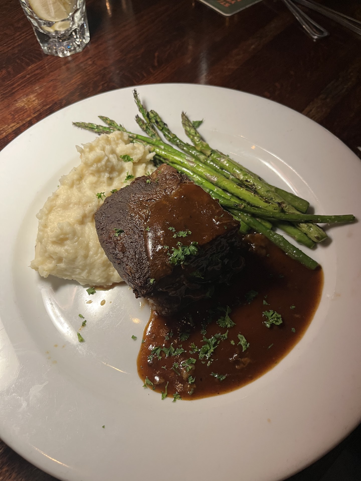 Read moreParty of 5 for dinner. Our server was very pleasant, attentive and accommodating. Minus 1 star because the food was just ok. Not bad, but not great. Meat Pie had a tender flakey crust. I chose the chicken and mushroom filling which was horribly overly seasoned with black pepper. The chicken had a texture like out of a can, maybe that’s what they mean by minced? My side of mashed potatoes and brown gravy tasted richly homemade. My husband had the fish and chips. The single (only one?) white fish filet was cooked perfectly inside with a light and crunchy batter. Sadly both the fish and the batter had NO flavor at all. Thankfully the tartar sauce was good and plentiful. Steak Fries were served hot and really tasty dipped in the gravy. Also ordered was the Pesto Pasta Salad. Kind of an odd offering with cold pesto pasta on a bed of mixed greens. Again just ok. Cheeseburger was thick, but overcooked and not juicy. Chicken tenders looked and tasted like the generic frozen product served everywhere else.