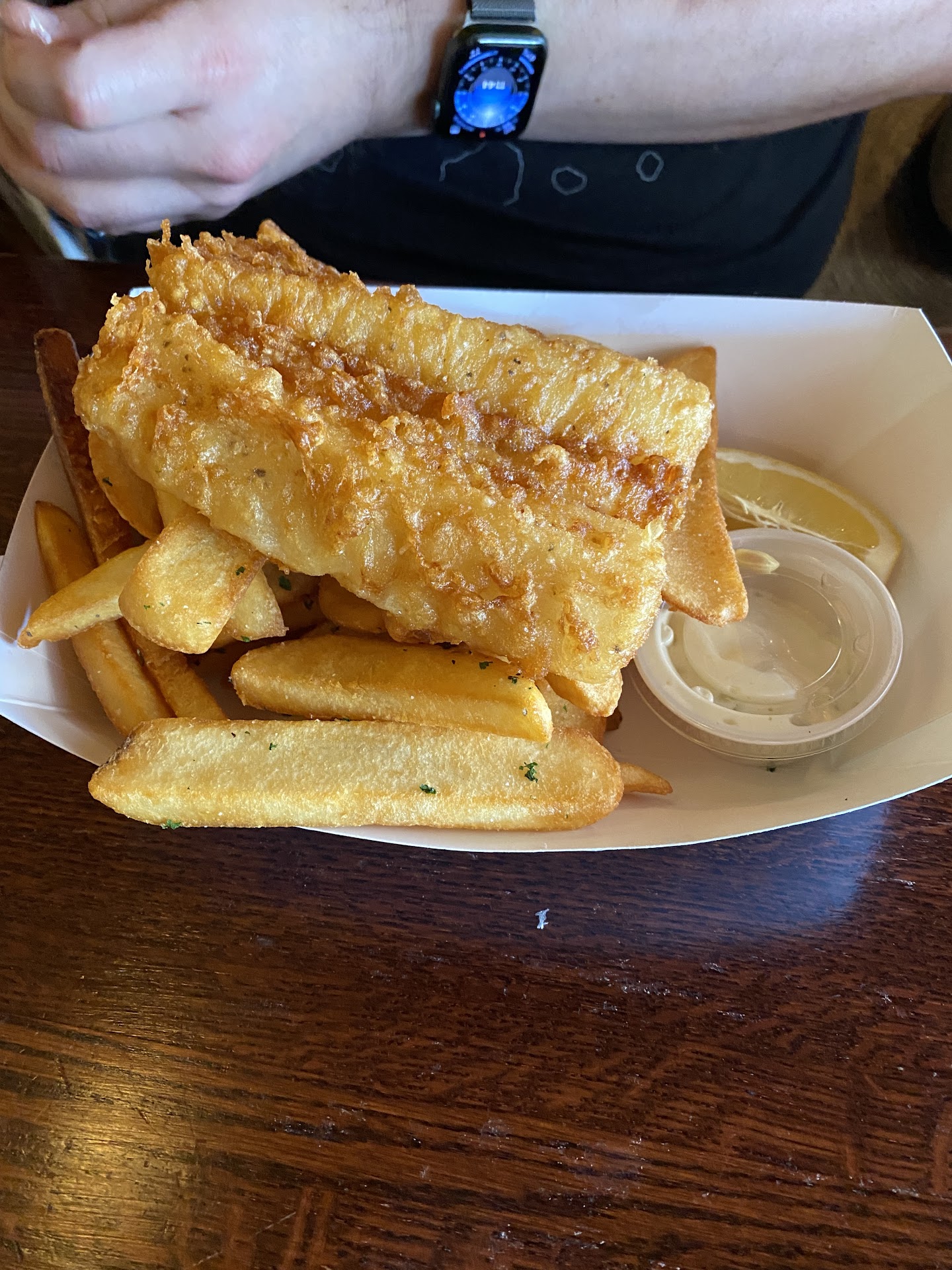 We came here during the annual Swallow Festival, so there was a special menu for the day. I got a burger, and my boyfriend got fish and chips. The food was great! Our server offered us ranch, and it was delicious with the fries! House made! Little off that the fish seemed to be one big fillet. We saw customers get the one big fillet too. Not sure if that’s worth the $19 it cost. I feel like 3 fillets per order is standard.