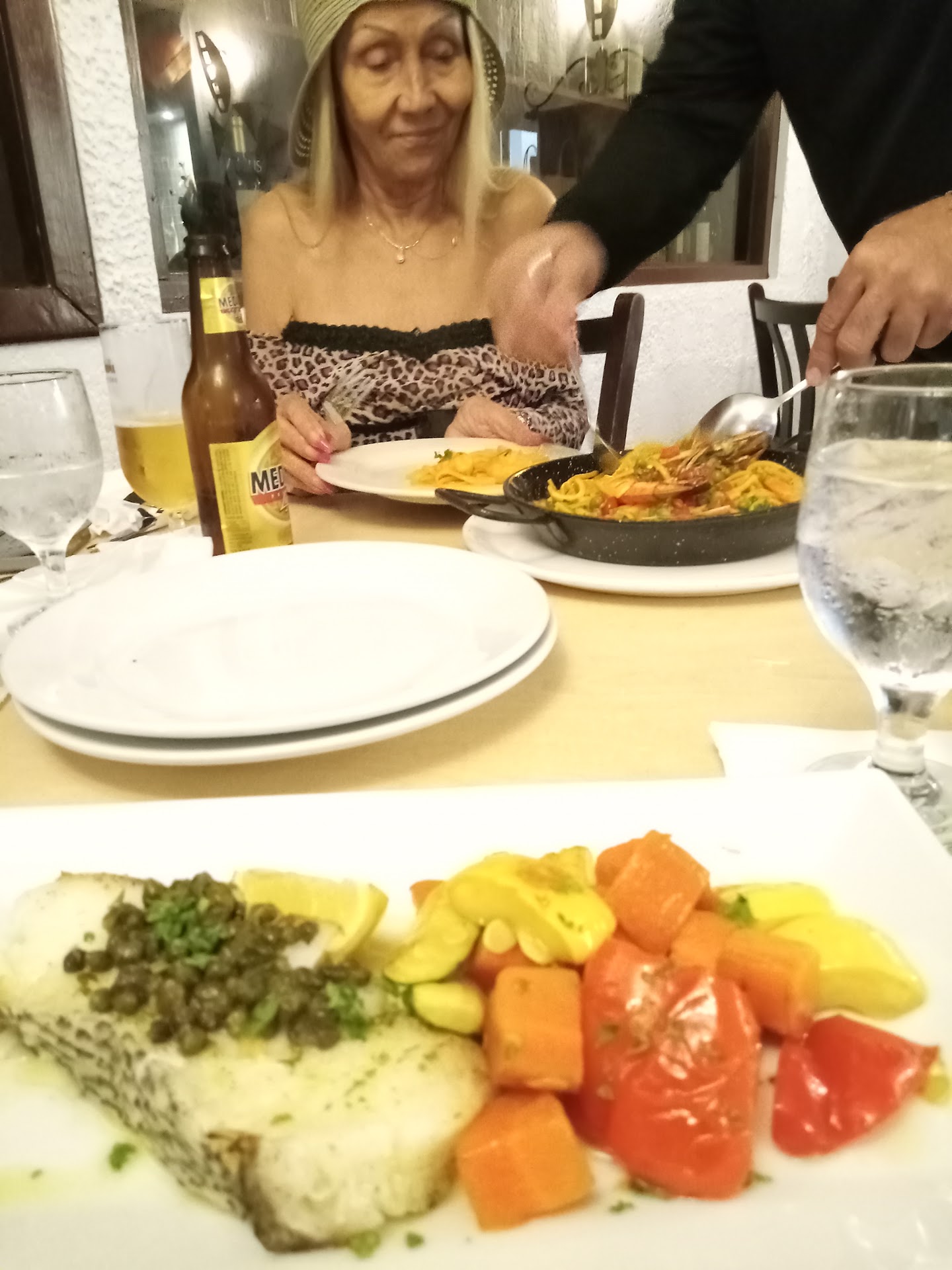 Read moreThe valet at our hotel recommended this little jewel of a hideaway. The service is impeccable! It was raining and a man came to us with an umbrella and assisted my mom. Inside it was the same. Tag team wait staff insure you do not need a thing! For example: My Mom’s paper napkin fell on the floor. She didn’t realize it but, the waiter brought her a new one! The sauces are fantastic. Very flavorful and nicely done. The fish on both our dishes was over cooked but, not terribly. My mom had the seafood platter. Full of seafood! I’m talking a langoustine, 1/2 lobster tail (Caribbean), a large sea scallop, a mussel, grouper, shrimp and calamari! I had the grouper with a mushroom gravy with thyme. Very tasty! The decor is Spanish and it’s quaint and smallish. It seems to be run be locals and they need our support folks!
