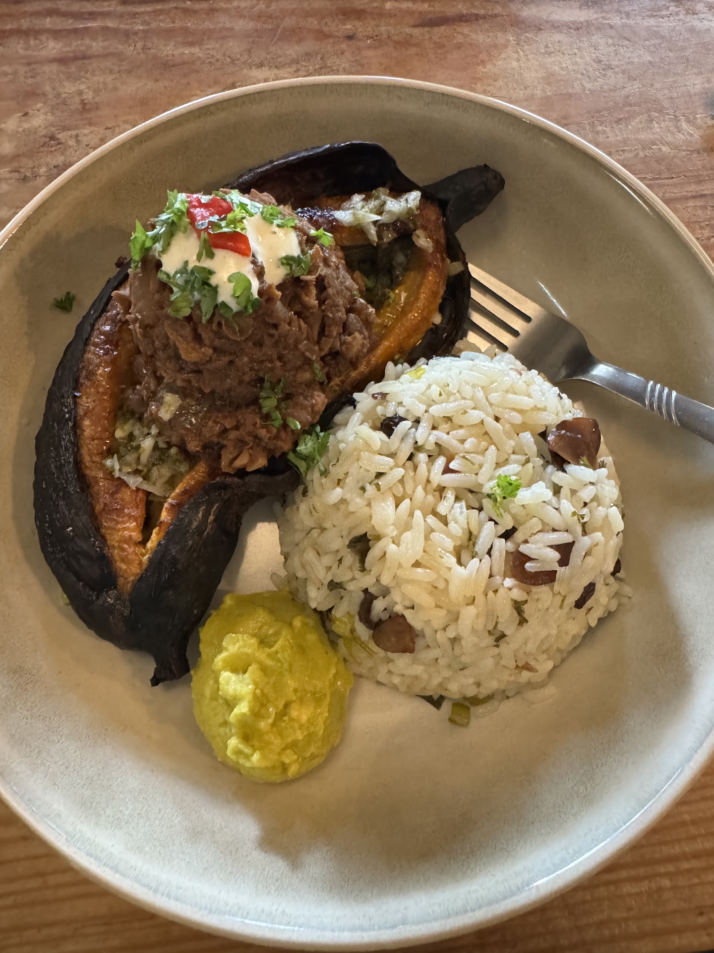 Ā Ā Ā Read moreOur lovely Air BNB host recommended Berlingeri as we are vegetarian. We are so thankful. It is a very pretty place with aweomse food. We ordered Jibaro Bowl, Taco Salad,Calabaza Steak, Banana Bread, and an appetizer that I don't remember the name of, but totally loved it. Wantes to reorder another day but did not see that listed on menu. Fir drinks we ordered ginger lemondade, sourpop and tamarindo. We loved all the food that we ordered. My top favorite was the appetizer which I do not remember the name of(too bad). Those were 3x round ball looking things which were fried and they had some filling inside. Cakabaza steak was a great surprise find. We had never eaten anything like that before. Specially we are really not pumpkin lovers. But this pumpkin steak was tastefully done and we loved it. Tamarindo was not our favorite, it tasted just like thick tamarind water. Ginger lemondae was good. A must try place when visiting San Juan. Convenient location and...