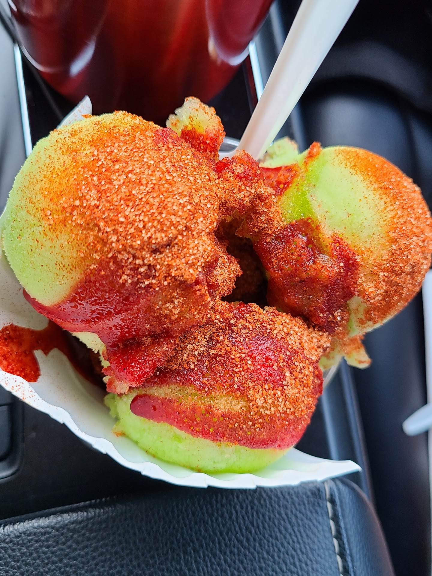 Let me say don't even think twice about this place! I literally live less than a minute from here and my husband and I barley tried it the other day! We have been missing out this whole time! I tried a medium Cucumber shaved fruit with sweet chamoy and Lucas, ughh super delicious! Which is in the picture. I also ordered Large nachos and not even my husband and I could finish it.. We went yesterday again and I ended up trying a mini coconut shaved fruit and again not a disappointment and the mini was perfect because I had ordered a medium the first time around and it was too much... I didn't put any chamoy on the coconut and it was simply creamy delicious just like that. When you refreeze these they do not get rock hard like raspas, they stay creamy and easier to scoop out.... My husband ordered a Banana Split with Strawberry, Vanilla and chocolate ice cream. He said it was the best Banana split he had ever had! They also offer alcohol smoothies and michiladas prepared. The girls that work there are amazing and super honest, I was warned about the nachos being super large and I should have listened. Guys check this place out they have so much...