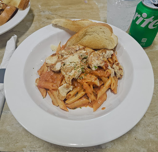Creamy pasta Primavera with added grilled chicken es ¡Está bien chingona! Fresh sautéed vegetables, broccoli, carrots, zucchini, yellow squash, sweet peppers, al dented penne pasta, tossed in a Herb infused medley of olive oil, garlic, topped with parmesian cheese. It is like a 3 ring circus of flavor in your mouth, Bip, Bop, Boom. Cozy, clean, romantic atmosphere with bouquets of flowers on the tables. I always enjoy bringing my side chick here at night, it is such a relaxing atmosphere, well lighted, delicious, satisfying food and clean men and women restrooms, what more could you ask for on date night??? Located inside San...