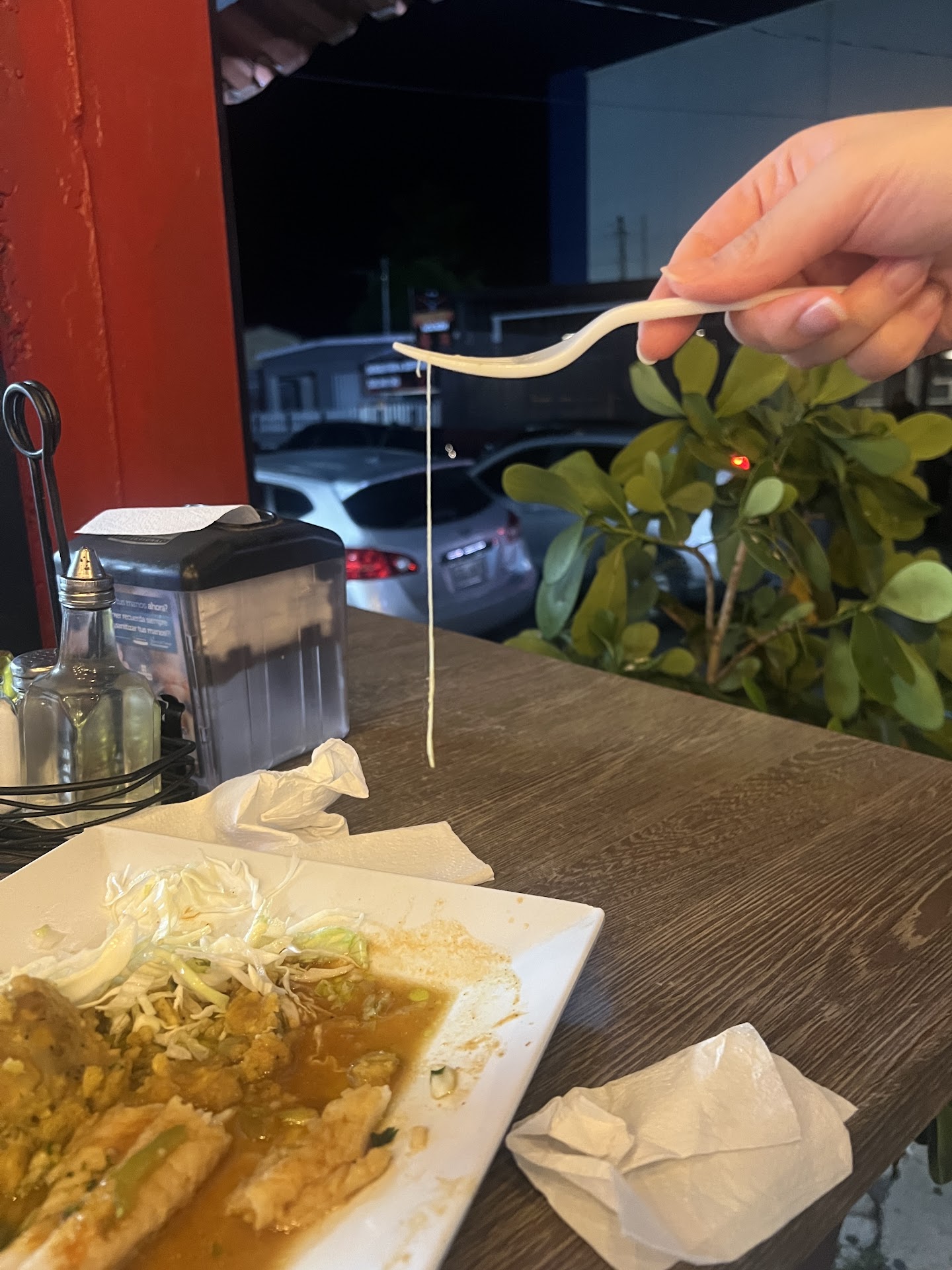 I ordered the conch ceviche. It was very flavorful and tasty. For my main dish, I got the grouper fillet platter with monfongo. They provided a pink sauce and a chimichurri sauce. The chimichurri sauce tastes a lil strange, like the tinge of dirty dish washing sponge. The tomato slice on my salad has a black (likely moldy) spot. Notably, I found a parasite in between my grouper fillet. (As a master in bio major who likes to read about parasites, I am pretty confident about this). Itâs not dangerous because parasites are easily killed by cooking. However, regardless of my passion for learning about parasites, I really donât anticipate to see any on my plate. Hence, I did not finish it and ordered dessert. I got a flan. The flan was fine, but the liquid under the flan both smell and taste sour and fermented (not in a good way).