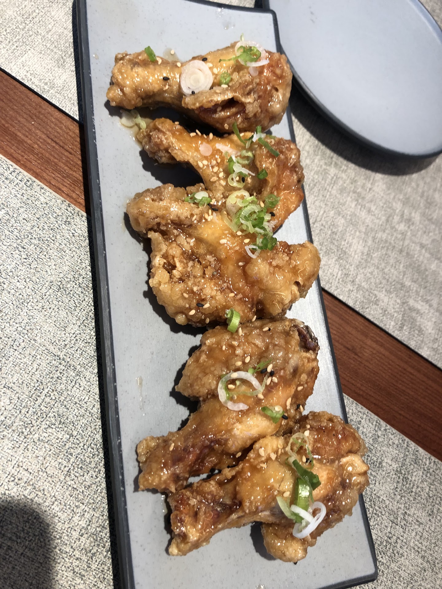Food taste: The sushi was okay. Iâve had better in the island and other places outside. For $22 it was mediocre. Needed more fish than avocado. Salmon dish was small, but it was the best tasting item. It didnât come with many vegetables. Only 3 broccoli pieces and not much sauce. The wings were not good at all. I couldnât eat them. It was also missing the chili sauce and it took over 10 minutes for someone to arrive.