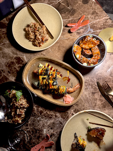 The crispy eggplant melted in my mouth with flavors that were out of this world. The crispy tofu was incredibly unique—one of the best-prepared tofu dishes I’ve ever had, paired with bold, creative flavors. My fiancé was blown away by his strip steak and duck fried rice. And the DRGN roll? A must. Honestly, every single dish we tried absolutely blew us away. The lemon bar desert is the perfect palette cleanser and you can’t go wrong with any of their cocktails.