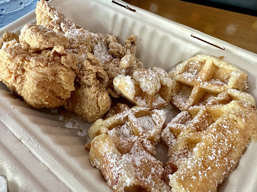 We wanted breakfast the last day of our vacation so we stopped here and loaded up on chicken and waffles, the Day Dreaming burger, piña coladas, and churros.