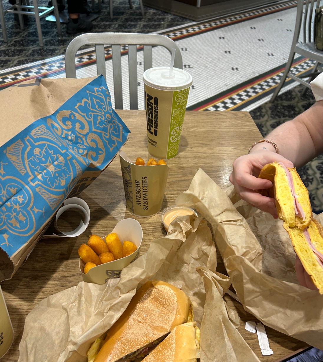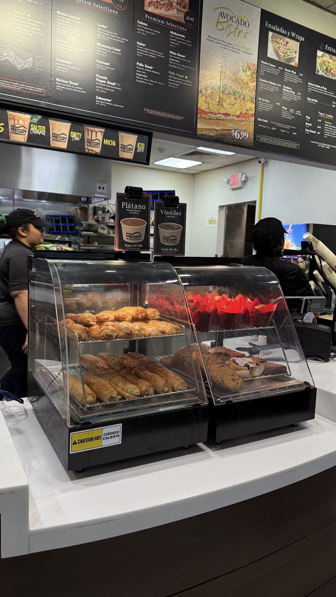El Meson is usually great: best sandwiches and corn fritters, yummy fries, vegetarian options (although tasteless) and so so pastries. BUT service at this location the morning of Saturday, August 20th was THE WORST EVER! This is the second time that I order through MESO PICK UP and they tell me they ran out of food after waiting for almost 30 minutes!!!! This is supposed to be fast and 34 minutes is SLOW! And to not even give you the food you PAID FOR. Also, there is no parking anywhere nearby, hard to find or accessible. I don’t mind paying the garage, but that takes about 5 minutes in and 5 minutes out if there is no line to get in (10 minutes MINIMUM just to park). So we ordered through MESO PICK UP and husband gets out of the car and waits for 34 minutes watching how the employees are wasting their precious time packing a bunch of takeout boxes for some big order that overrode everything everyone else ordered. About 20 other people waiting in line for their food. Whoever manages this location is an inept. We never got our food as my husband was told that they had ran out of hot cereals way early (they are supposed to serve it until 11 and we ordered about 40 minutes earlier and told that they never had our food a bit after 11). And just now I received a notice that they will refund my money paid. At least, since last time I didn’t even got my money back: no food and no refund....