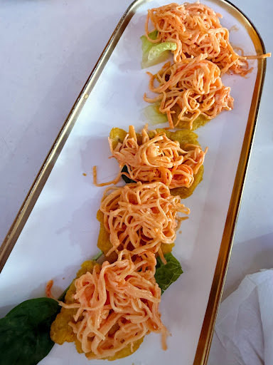 Great location, great ambiance (Mia the dog is so cute!), great food and drinks! Stopped by for some food after exploring OSJ. It was in the perfect location with lots of outdoor and indoor seating. The decor was so cute. They incorporated traditional decor with beachy. The waitress was very nice and you can tell she was trying her best while being busy. We ordered the piña colada that came in a pineapple and a mojito. Both were strong and delicious! For food we ordered the crab on tostones, porkchop with rice and beans, and steak with rice and beans. Portion sizes were huge! I couldn’t get through it all so it was kind of wasteful unfortunately. We both agreed the porkchop was better than the steak. We also agreed the crab with tostones was SO GOOD. The star of the meal. I’d definitely...