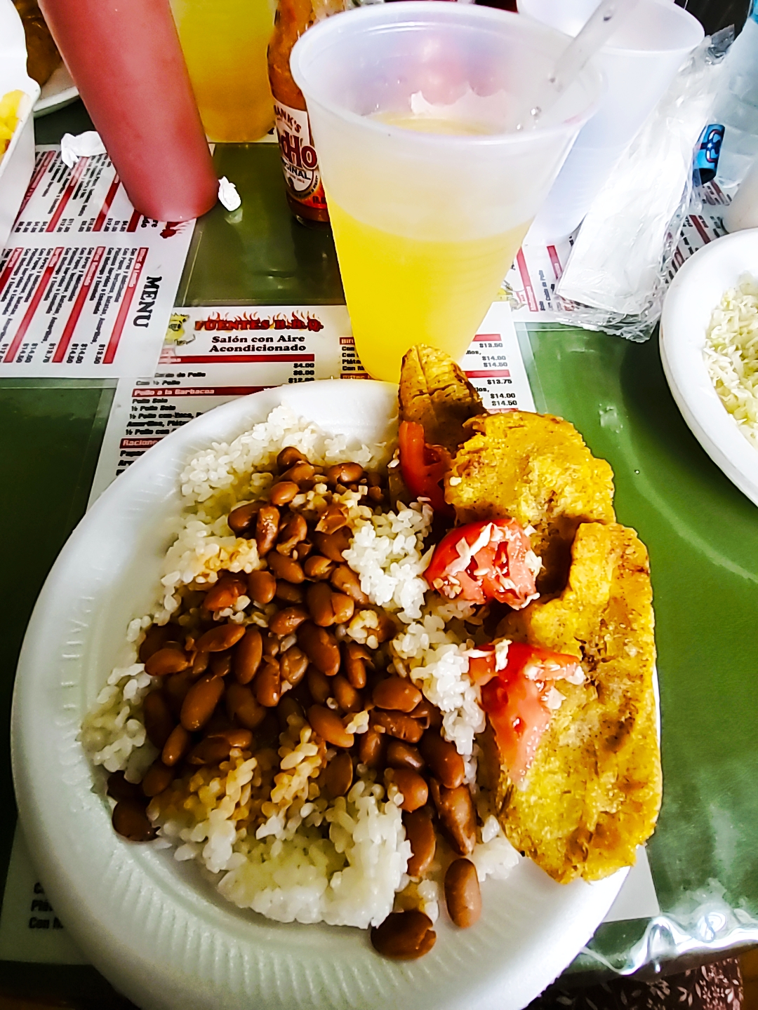 I really wanted to love this place being that it is a local small business but there was one thing I just couldn't get past. Our waiter was wonderful. Everyone greeted us from the entrance and after seeing how hot we were , he switched us over to a separate dining area that was air-conditioned. We ordered Juguito de Parcha with was super sweet and refreshing. I did order another glass of water on the side to reduce it a bit. We ordered our meal. I asked for Pechuga rellena with papas, tostones and salad. Please Ask what's in the salad if you are NOT a cabbage fan. I'm not so that was not fun for me . The chicken started gooing extra melted cheese when I cut it. It looked like milk gooing out. I ordered papas with my meal thinking it's potatoes Well, it was French fries. That was a sad surprise . I just couldn't eat anything but the tostones and decided to order a side of arroz Con habichuelas. Man that really hit the spot! Yes it was just rice and beans but it was hearty and comforting food! So back to what I couldn't get past. EVERYTHING we ordered that was fried was used in the same frying oil as the meats . So the fries had an after taste of fried meat . The tostones .. the chicken! Everything! I would still come back and maybe ask what comes with the order, is it fried in same oil ? Because in Texas, the say salad .. we get lettuce , tomatoes ..etc . They say fries and it's French fries . They say potatoes and it's mashed potatoes ,home fries , roasted potatoes .. etc etc . This is not the establishments fault , it's ours for assuming especially when we're in another country. All in all , we liked the service and some of the...