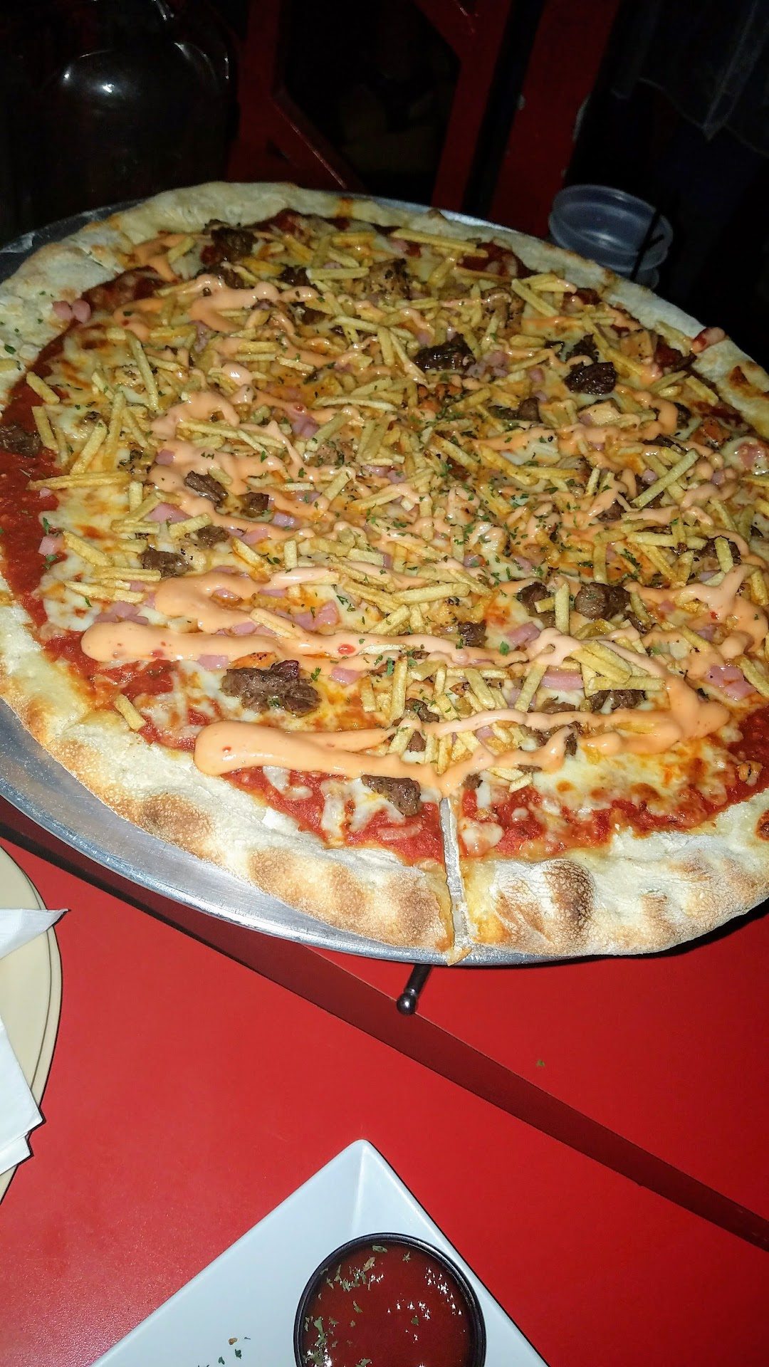 Read moreThis is a great place to enjoy some pub food and drinks. Located on a really busy intersection. I would not recommend this place if you want a place with very little noise. We ordered the BBQ chicken ranch, La tripleta and the Naked one. These are some quality brick oven pizzas. The BBQ and mozzarella basil one were delicious. Great crust and plenty of toppings smothered on top. We also ordered the sampler appetizer, wings, chicken club, Boricua and brunch burgers. The wings here are a must order as well. The honey Siracha and Jack Daniels BBQ flavors were delicious. The Sriracha one was so popular we tried to order another round and they ran out. The burgers were unique in their own way. It's a thick beefy patty per burger. The bacon and sharp cheddar cheese were perfect.