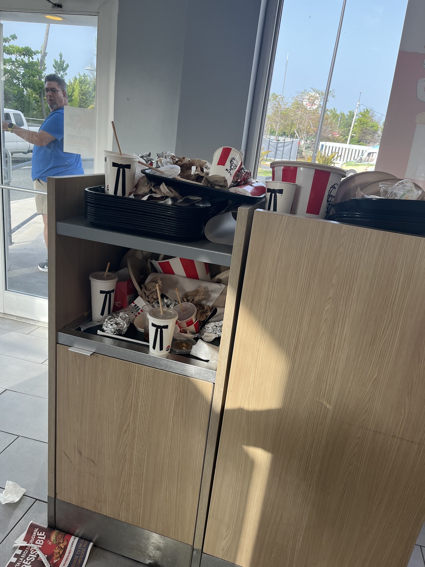 During my stay in San Juan, I was very excited to try KFC chicken from the Island. However instead of getting served chicken I was served a full plate of discrimination. I rode an electric scooter to the location. When I arrive inside the dining area. I wait for about a minute until anyone even noticed me. When someone finally did a short women with a grey shirt tells me the inside is closed and that I have to go to drive thru. I ask “why” if the inside is clearly open but she just says “inside closed”. For context, it’s 6pm on Tuesday, the door is open and the open sign is lit. I ask if she can just take my order from the drive through computer, take my payment since it doesn’t make since to walk through a drive through with no car and no line. She says no and I have to go through drive through. I follow orders and head to the drive through window where I am still a not served for over a minute . While I’m waiting to get helped outside standing by the drive through window the same woman that told me to order outside happily opened the door for an elderly white couple. I asked if I get to come inside too and she replied “no just them” I ask why and she responded “because”. Looking inside I see the black shirt shift manager laughing at me through the window laying over the counter on her phone instead of helping me. That upset me enough to leave the store and write this review. All I wanted for a KFC experience in San Juan but instead I got a racist experience. I hate to view it this way but what else could it be when I am denied entry but a white couple gets welcomed and I see it with my own eyes. The worst part of the rudeness of the crew and the lack of help. It’s as if they meant to give me a bad experience. The only person who apologized was the man who later came to take my order at the window. His English was very broken but he did apology for her actions. I’m also writing this on google so that other tourists can stay away from this location to avoid being...