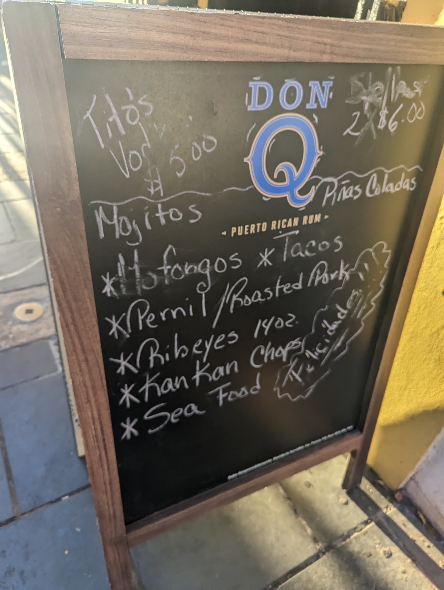 A $5 Tito's vodka special was offered and was a nice change from all of the rum and margarita specials elsewhere. Drinks arrived quickly and were well mixed- highly recommend! We were there on a Tuesday evening, and it seemed like the special was running all night.