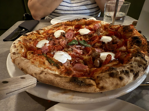 Cons: The pizza is closer to a local criolla style rather than Neapolitan or New York–style. The crust was slightly undercooked, and the Aurora had a hint of unexpected spice. We were charged $5 for a house water bottle after asking for a glass of water, which was surprising. Service felt minimal and a bit impersonal.