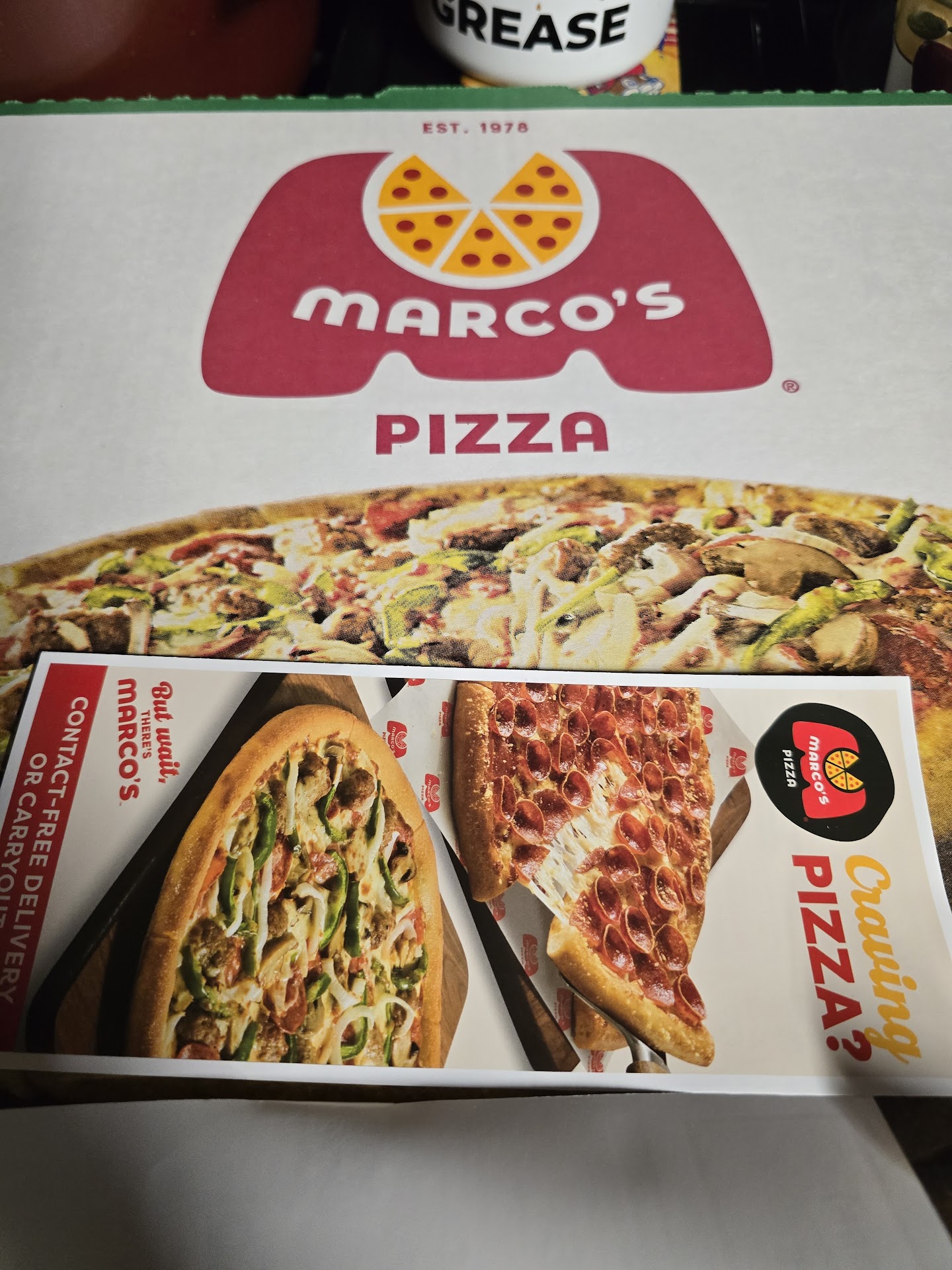 Read moreFirst time visiting Marco's Pizza. We ordered our food Sat down and was surprised they brought or food to our table , thanked us for coming by and if we needed anything else, just ask. I wasn't expecting that type of service. I thought they would call us like Peter piper. Lol. Great tasting pizza, a must try. In the event you want it delivered I believe it's a $3.00 charge plus anything you want to give from your heart....