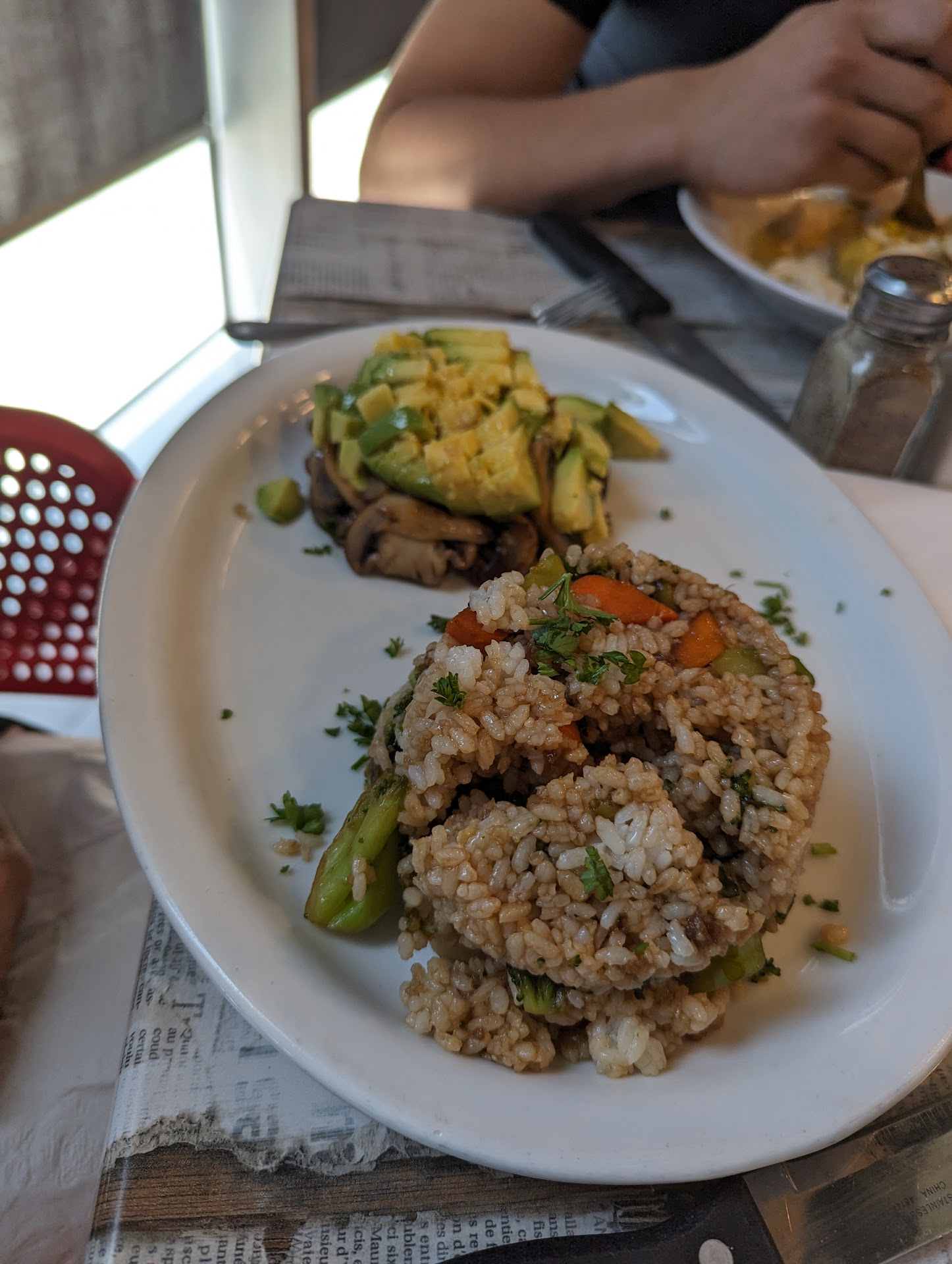 Plantain chips for appetizer - great start Mushrooms tartare was amazing - our vegan was very pleased, as were the rest of us who tried it. Mofongo two ways, with seafood and chicken handled two more of us. As Dora the Explorer taught me, "yum yum yum, Delicioso!" Now the fussy teen, too big for the kids menu, too picky for the standard menu. She asked for a modified version of one of their standard plates and they accommodated her...not just accommodate...above and beyond!! The chef was proud to make a custom order today, it seemed, and it was wonderful. They added some roasted plantains on the side and she even ate that. It was very nice to see my fussy eater enjoying her meal.