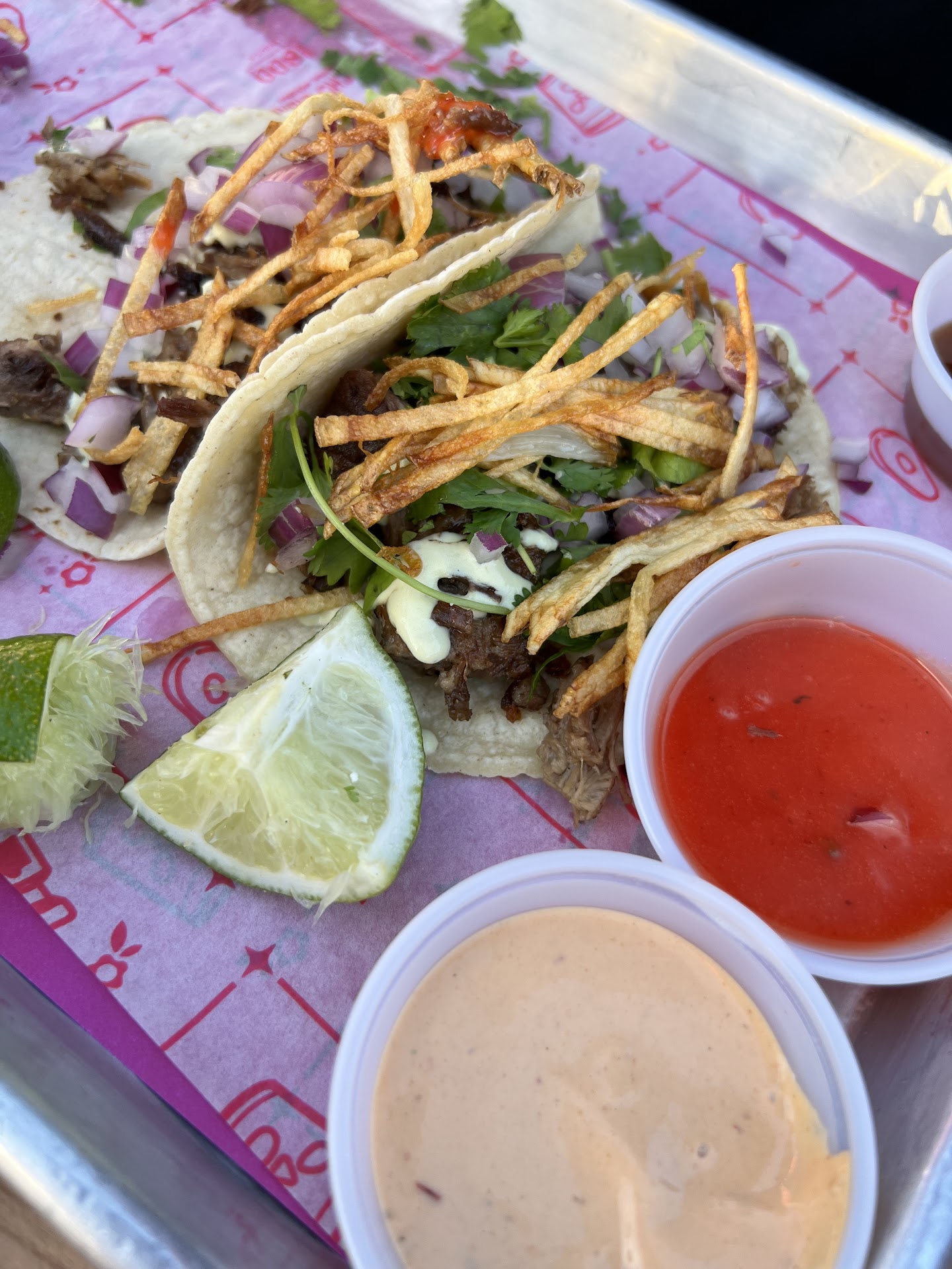 Read moreGreat atmosphere, decent food, terrible service. This place is basically fast food where you pay and pick up at the counter BUT when you pay it expects a tip. I didn't see how to bypass the tip requirement on the screen. Anyway, I waited 45 minutes for 3 chicken tacos that fell apart as soon as I picked them up. There was a lot of chaos in the kitchen with some customers receiving their food before others who had been waiting 30 minutes longer. One of the kitchen helpers laughed when numerous people complained and got angry. Overall a frustrating experience ...