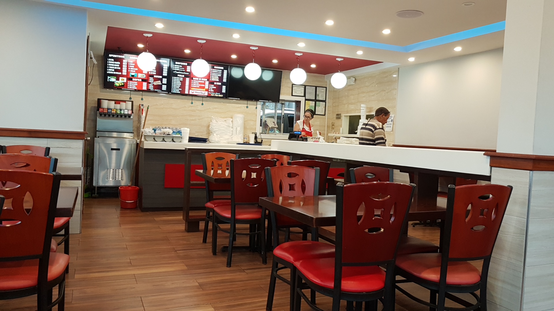 Great menu selection, great prices and great taste! Tostones con ajo were a little greasy, but very flavorful, and they do something different with the Mayo-ketchup so that it's a little sweet but still very good. I was happy with the amount of camarones in my meal (camarones con ajillo), and the arroz frito portion was large. The food came out quickly; I waited less than ten minutes after ordering...