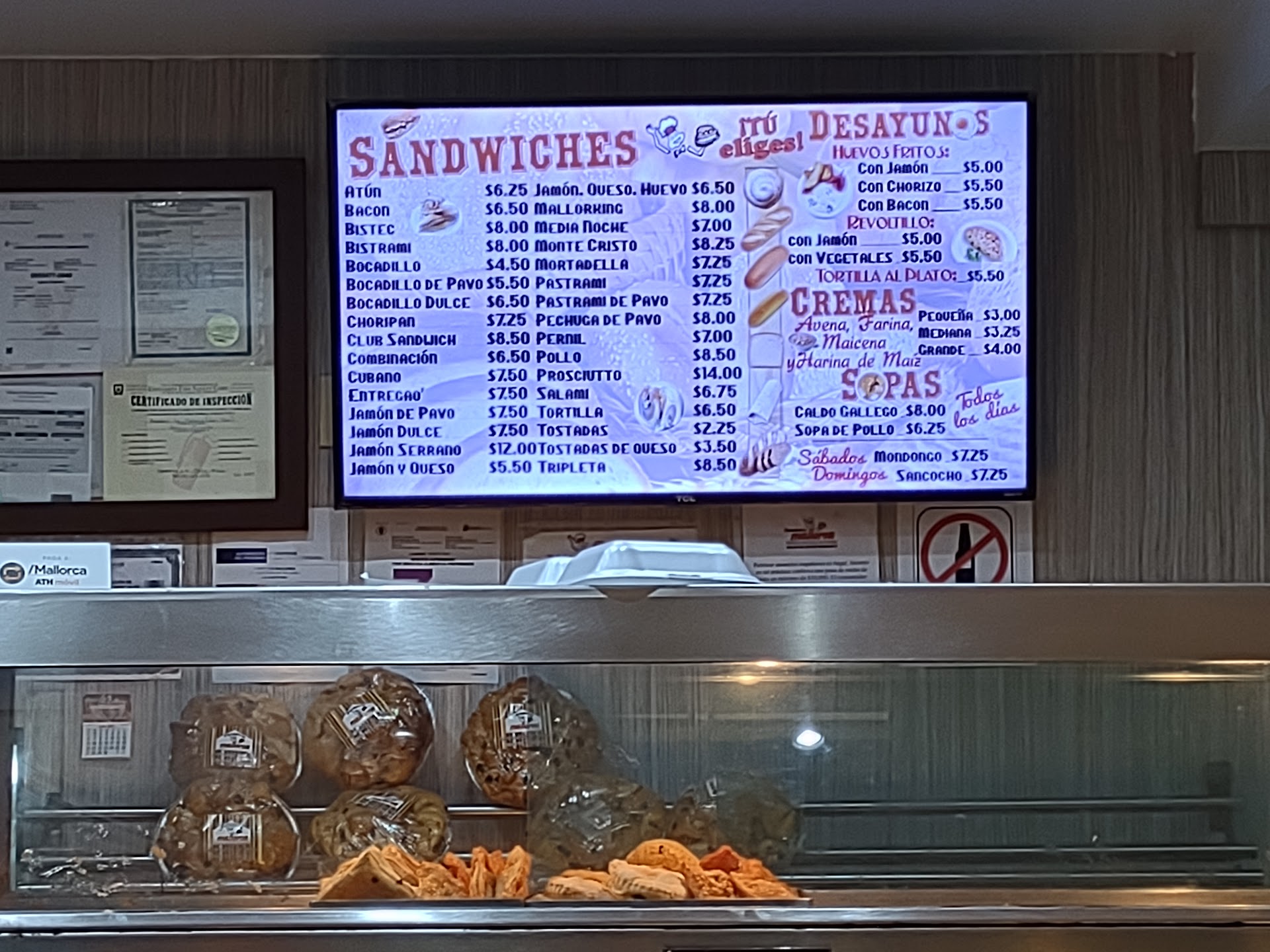 Read moreAl fin me pude comer mi sándwich de combinación en esta Mayorca Americo Miranda ya que en la 65 de infantería Río Piedras no me atendieron para entregar mi pedido. La cajera muy rápida, amable y sonriente me tomo la orden y en varios minutos ya esta listo mi pedido. No se si es el mismo dueño el de Américo Miranda y la 65 th. Pero aquí en Américo Miranda no funciona el teléfono cuando llamas. Pero el servicio fue 5 estrellas y la comida también. Pero me di cuenta de algo un carvito gordito que estaba de lonchero un cliente le dio una propina y rápido se la hecho al bolsillo y me fije que tenían un vaso de propinas el cual verifique y solo tenia centavos prietos. Siendo esto sospechoso de parte de este empleado y pues en la 65 de Río Piedras la cajera más embuelta en el chisme que atender clientes y lugar vacío es increíble. Dueño de estas panaderías o dueños verifiquen la conducta de sus empleados ya que somos los clientes quienes te patrocinamos sus negocios. Un cliente bien atendido vuelve y recomienda a más personas y son más clientes para ustedes. Cliente mal atendido no regresa y da mala reputación...
