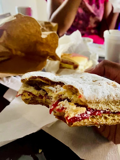 Old style deli, bakery, bar and coffes shop that attracts ALL types for delicious baked, yes BAKED. Sandwiches in a,wood fired stove. People drive up in Mercedes, on bicycles or just walk in...most democratic bakery in the world. No pretense here, just friendliness and a staff that proudly serves you wonderful food.. you can sit at countersthat are,squeezed in and define the place. Or at a fancier five seat full service bar. I love it. Nothing touristy about this place, but all are welcome. They have "real baked turkey " , by the way, Italian coldcuts... and I dare you to try their signature Jerezana sandwich. Breakfast or lunch or a coffee with pastry. They, like traditional coffee places, ask you how you like your coffee....dark or milky .. and how many sugars,do you want...AND they make it that way. Walk out with a loaf...or half loaf of warm, freshly baked bread right out of their brick oven. This is the kind of neighborhood place that doesn't exist anywhere anymore... If you think coffee from immaculate Starbucks is the way to go, with their refrigerated pastries...don t come here. Jokingly..but for real..this is the place where judges, lawyers, cops and those they deal with all day meet stripped of any titles or privilege. Delicious and down to earth, and very, very Puerto Rican... and...