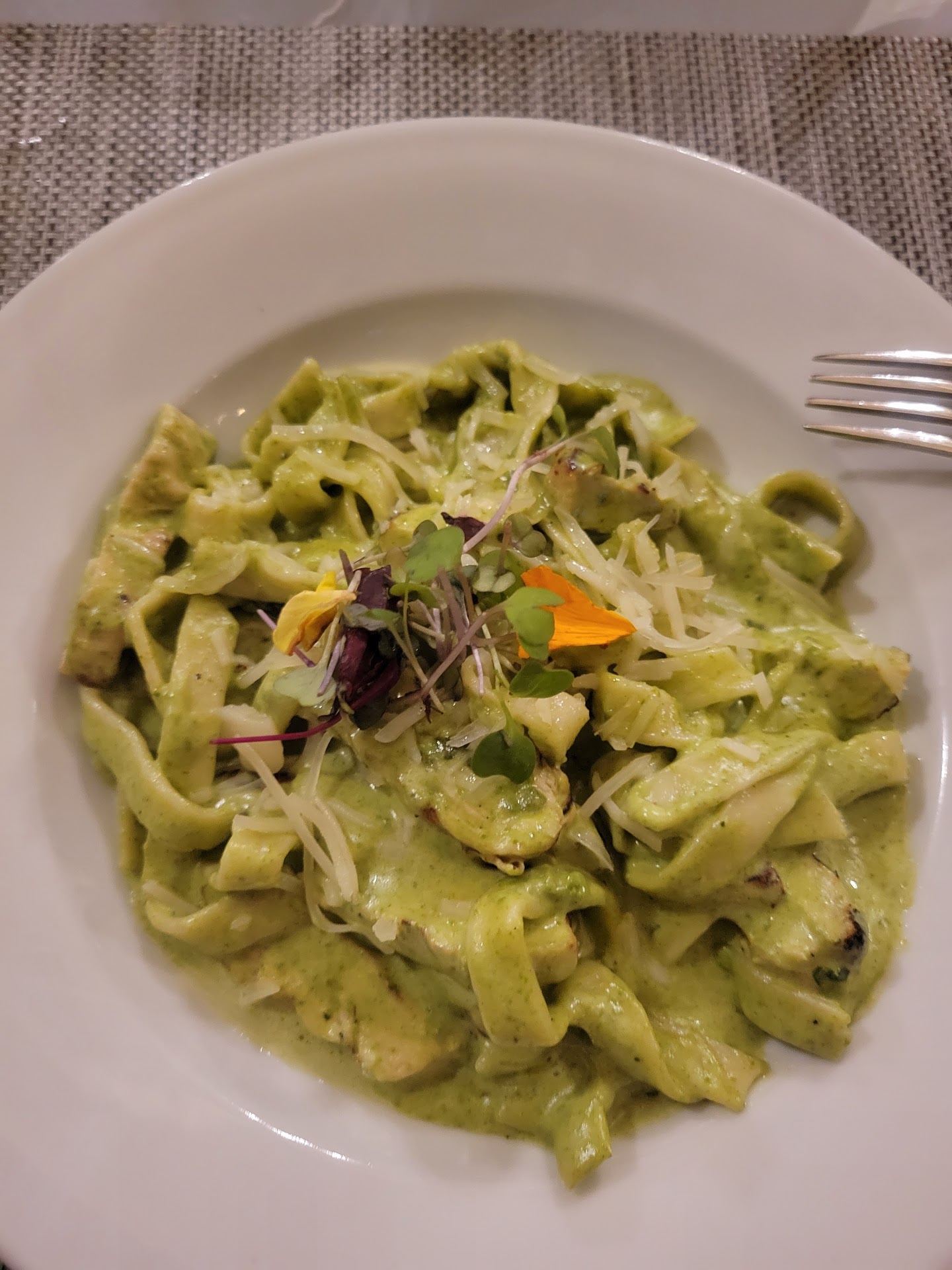 Our hotel recommended this place. A little difficult to find the entrance to as Gmaps doesn't give you the entrance. Let me say that first the service was great. Loved our waiter. The drinks were superb and there was enough of a "tropical" selection that you feel like you aren't at home. I looked at the menu online and fell in love with a few options. Please know the food was good! But the menu changes often, so don't set your heart on anything. The chicken pasta was good. I needed a bit of salt, but I would order again. It wasn't what I imagined the lobster pasta would have been (don't set your heart on an old menu!)or the ceviche. My sweetheart got the skirt steak and it was great! He loved the beabs and rice side. I'm not fond of beans and rice, but I will say it was good. They didn't have the coconut ice cream I had my heart set on (not on menu) or guava cheesecake (on menu). My sweetheart loved the little flan. The drink menu was the best. Try everything on it! Overall, I would go back, but after looking at the menu. The place the G Maps takes you when looking for this place had a...