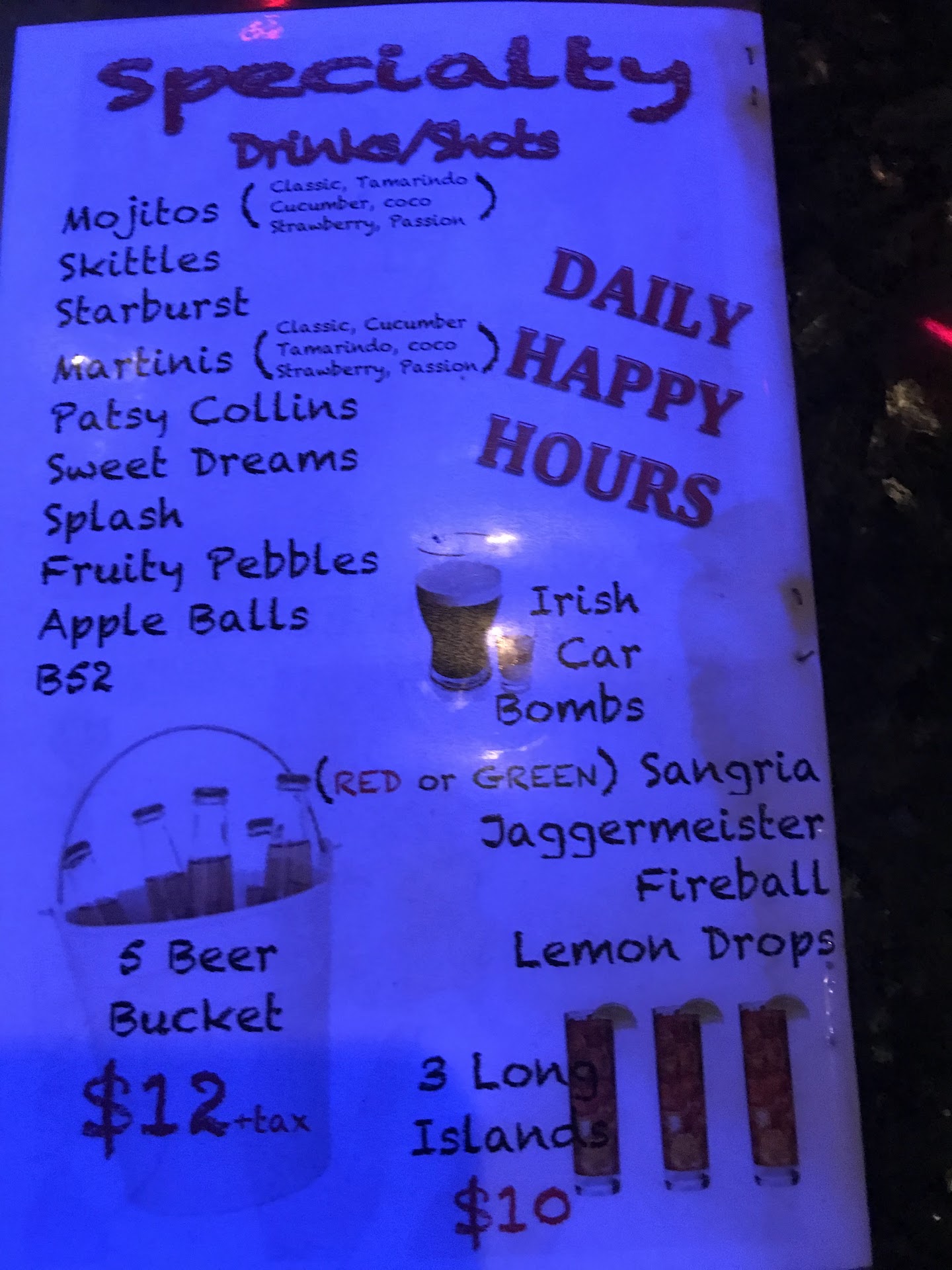 Dark lighting, loud "urban" music playing (which I found weird for it supposed to be an Irish bar/grill/whatever it was. Drink prices not bad and overall vibe was ok even though wasn't really my type of place. However when we left to check out they threw on a "Table charge" for sitting at a table? I don't know what else you would do there bedsides sit at a table? It felt like a cheap way to squeeze out an extra $9.