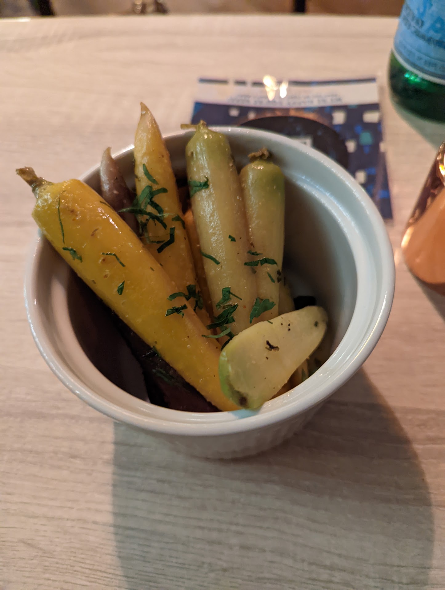Ordered the carrots and just about forgot about em. The garlic or something must have been off because they were super bitter and under roasted. At least for me, a bit too much tooth for a baby carrot.