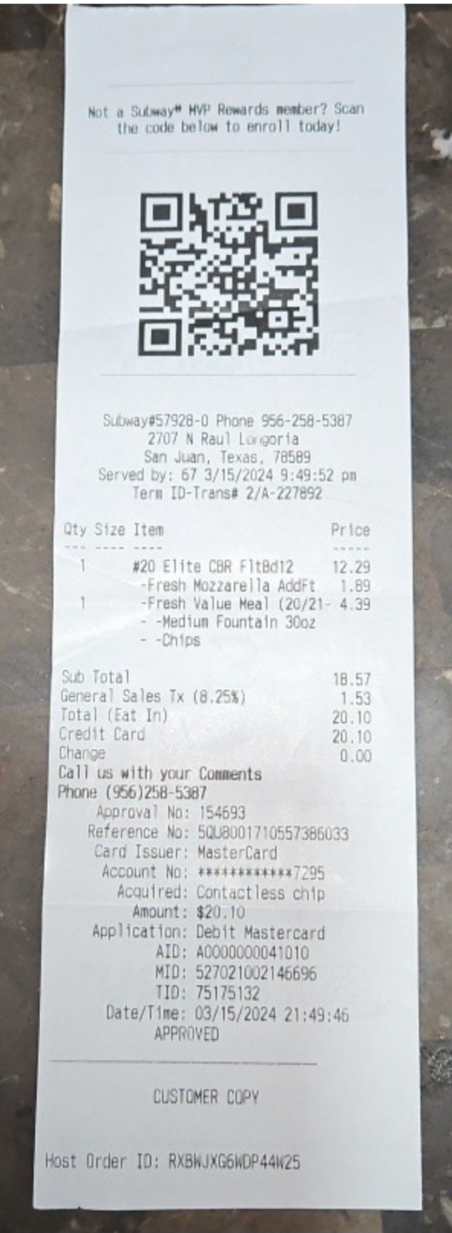 Read moreI received my salad without a bag all I got were my chips , a fork and napkins. When I called I asked liked if they ran out of bags or something they said that they don’t give bags for salads when in fact I’ve gotten them before and I called the local one in Pharr to ask the same question and said of course we give bags with salads but they were out they could of said something like that instead of lying to me saying they don’t give bags with salads. Apart from that the sauce I use i added extra chipotle it was just on top like a slap everything basically stayed on top with nothing in the salad & that’s because I had asked for...